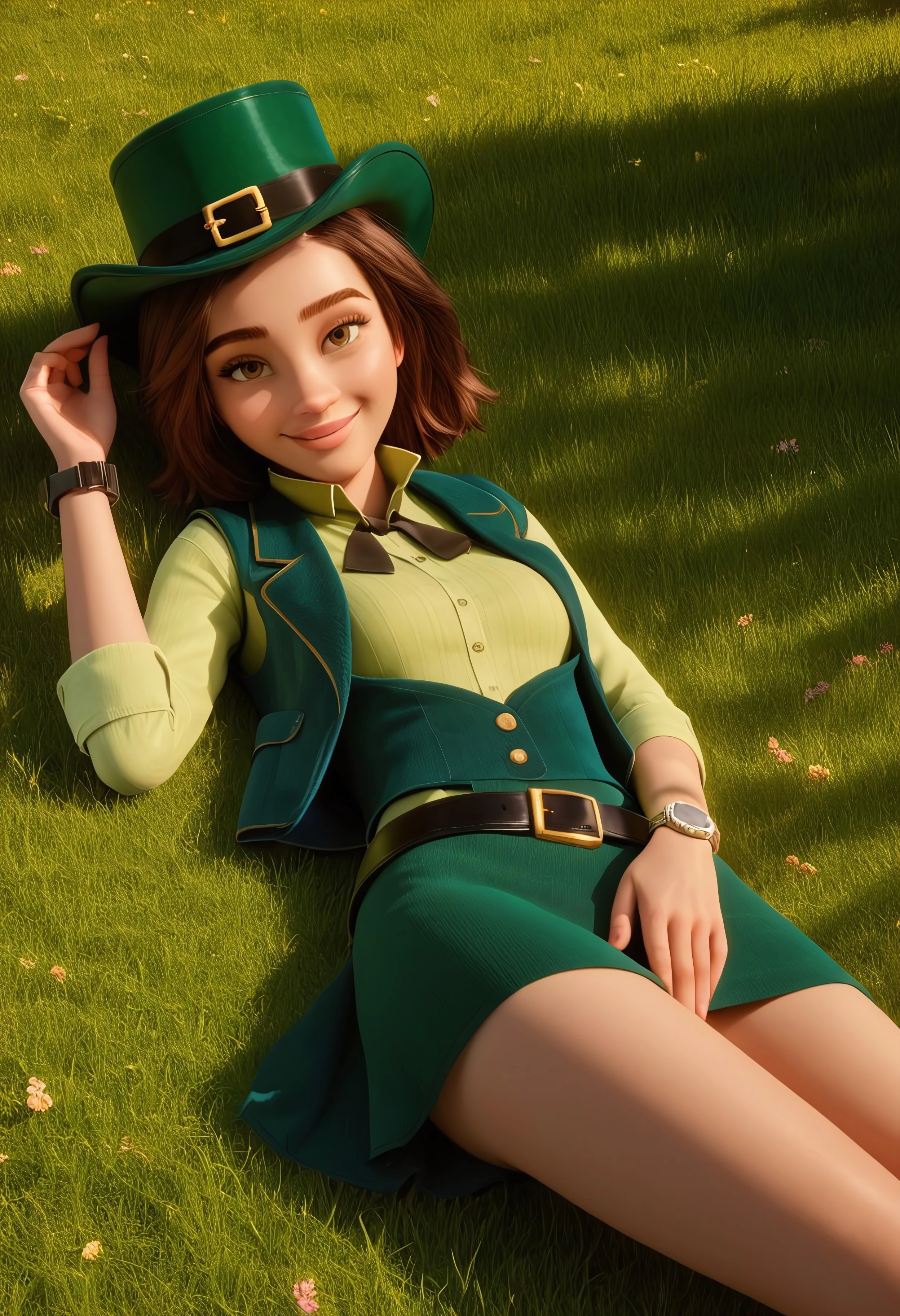 belt, vest, hat, shirt, jacket, wristwatch, green headwear, dress, vest, jacket, black belt