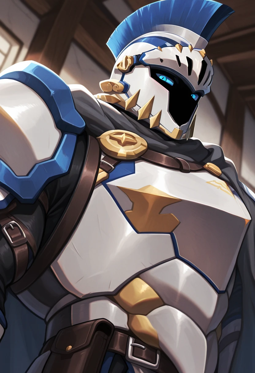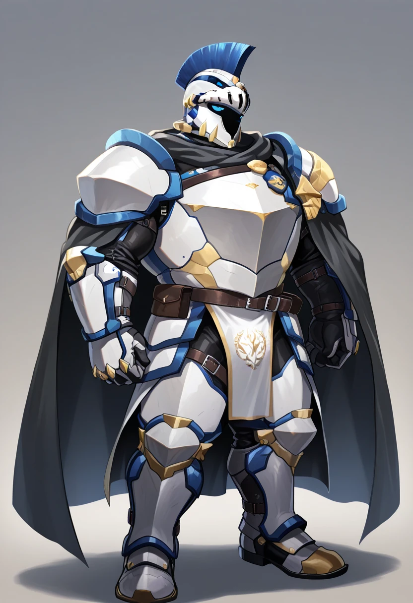 Main outfit: full armor, cape, breastplate, gauntlets, belt, pelvic curtain, leg armor, knight boots,