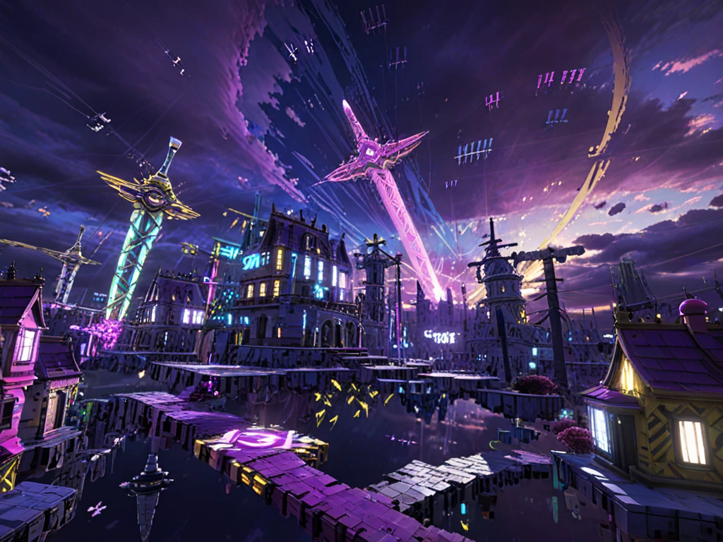 CrystarAesthetic, aesthetic, ethereal, dreamlike, purple, blue, CGI, futuristic city, digital artDescription