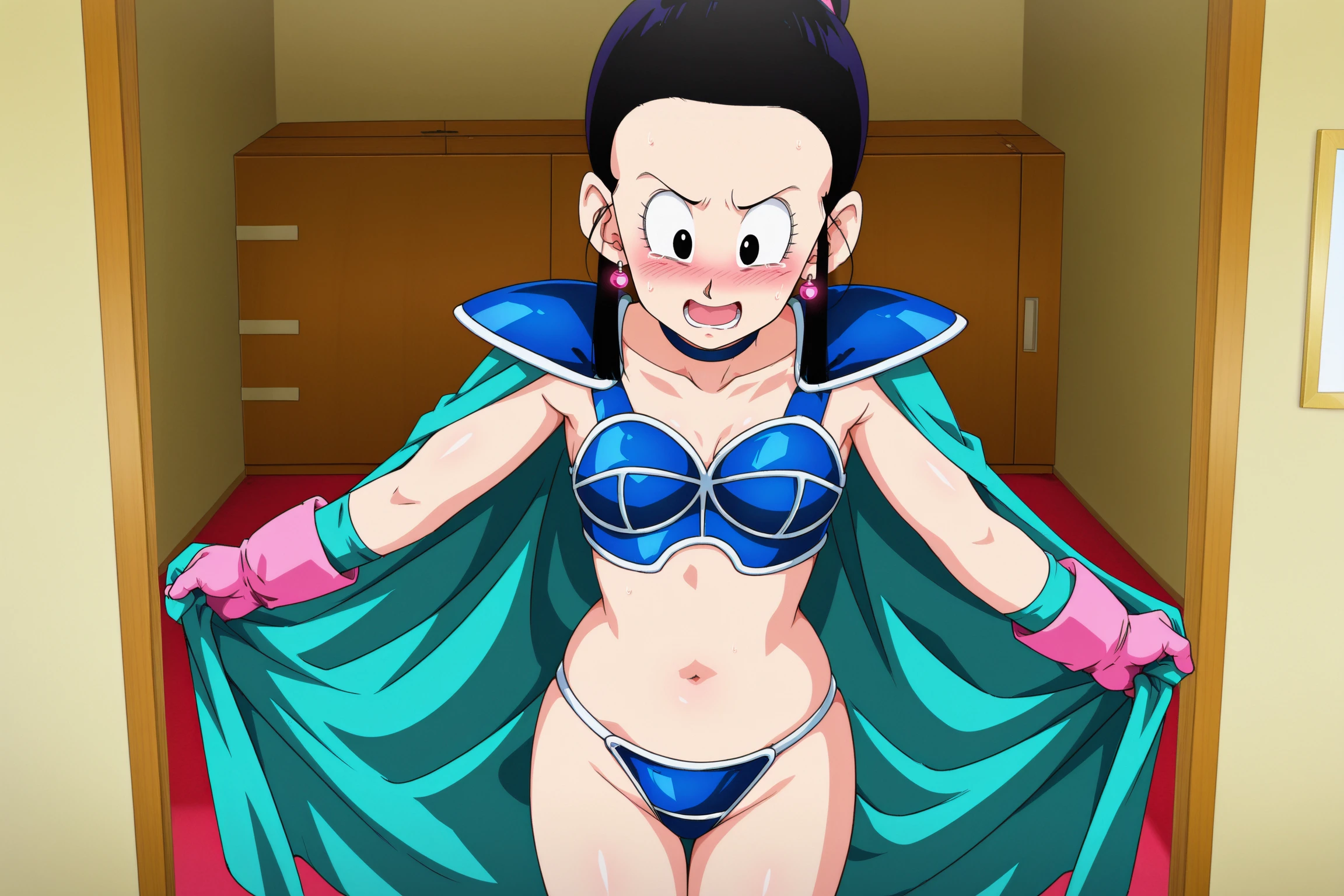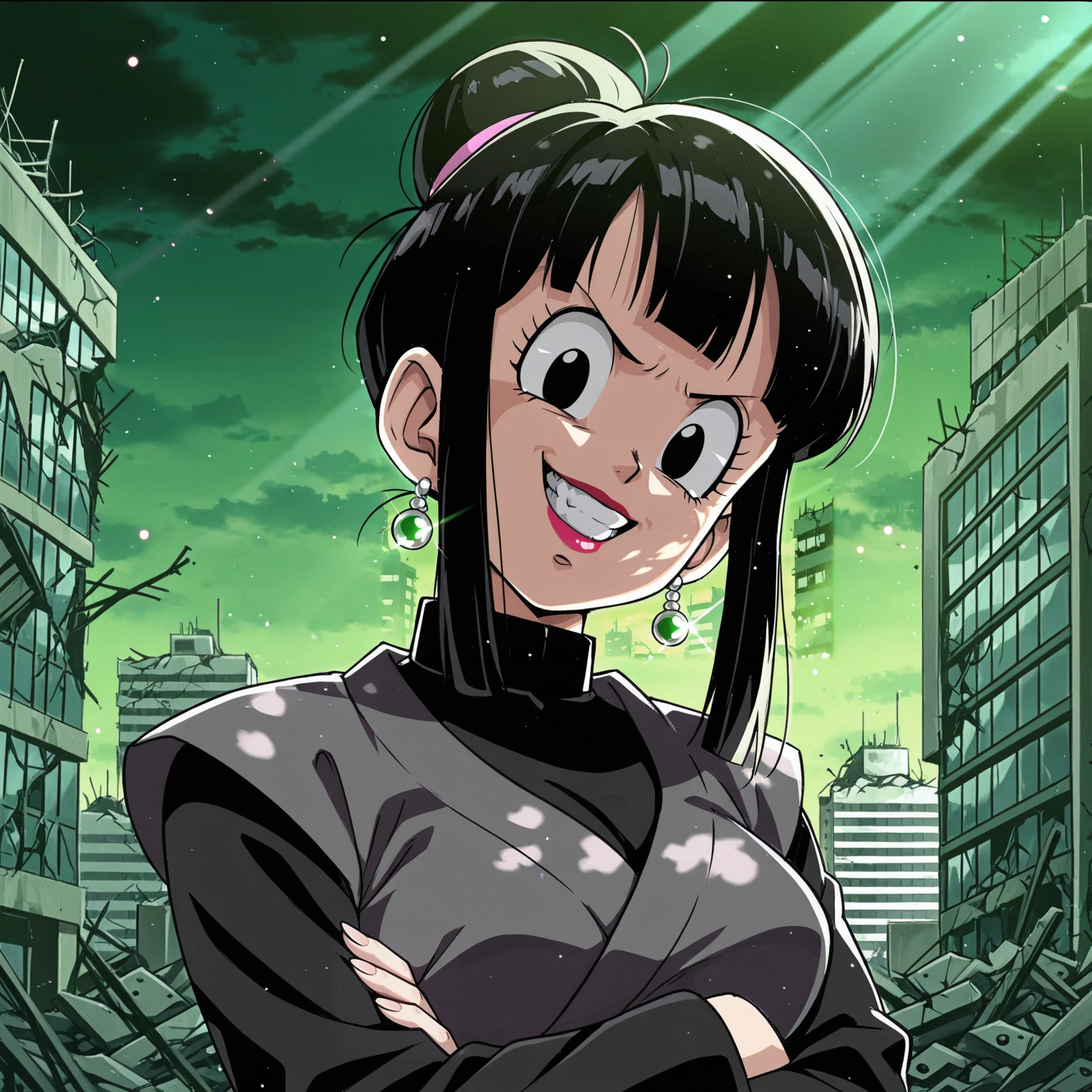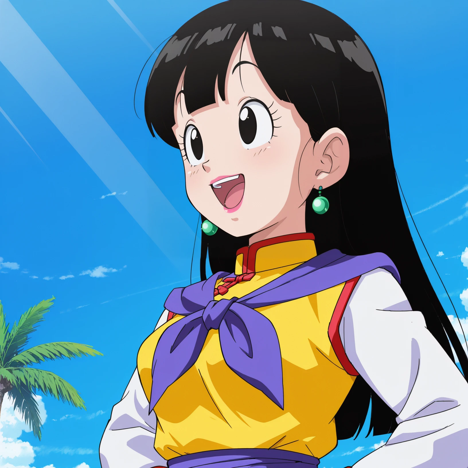 chi-chi, buu saga, single hair bun, black hair, hair pulled back, hair bun, black eyes, earrings, DBZ,