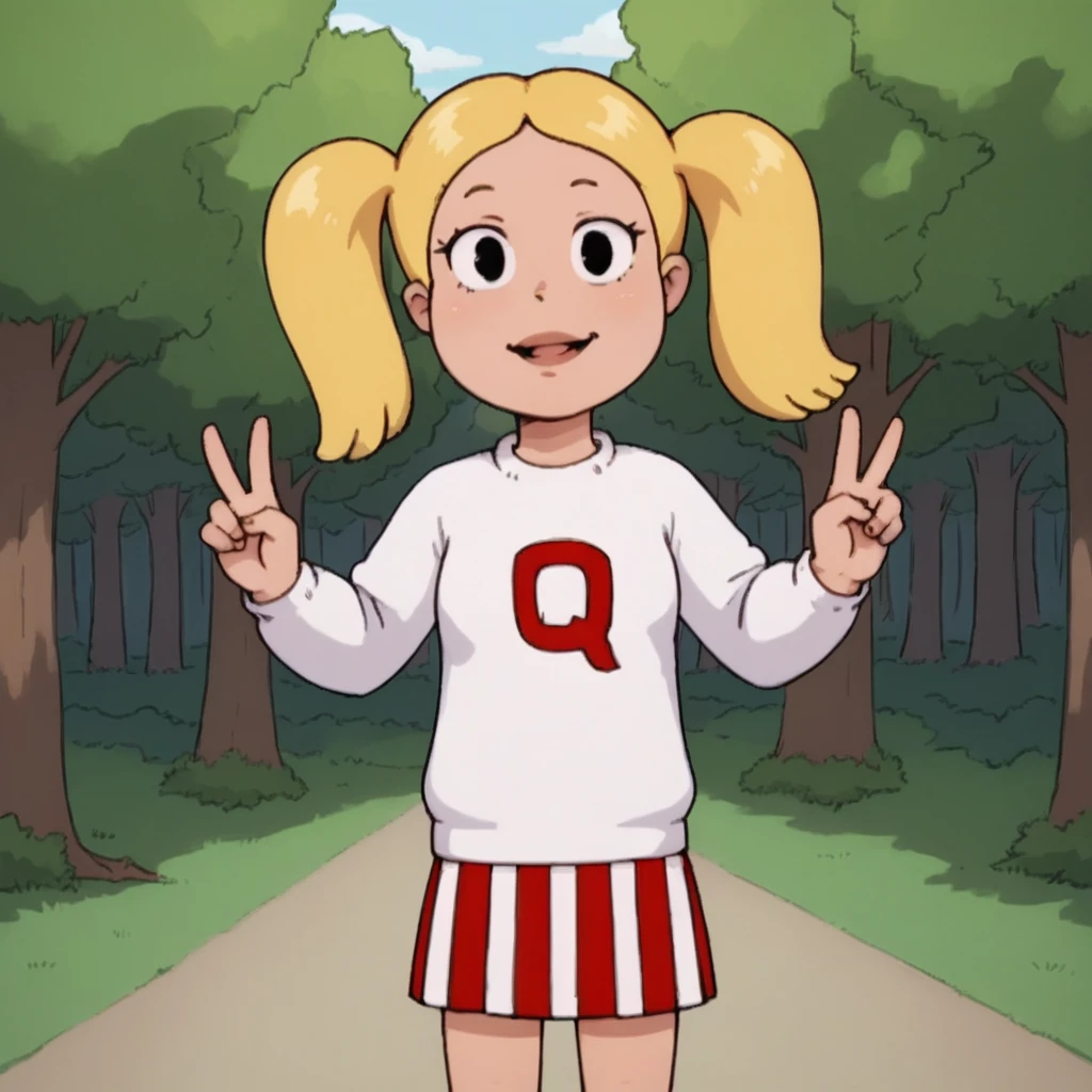 UnnamedGirl, 1girl, solo, blonde hair, twintails, black eyes,