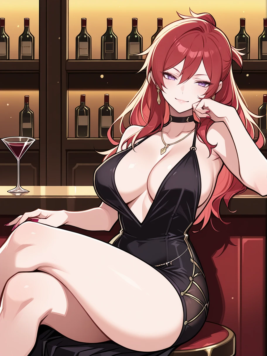 ge2lh_cld, red hair, long hair, purple eyes, mole under eye, large breasts,