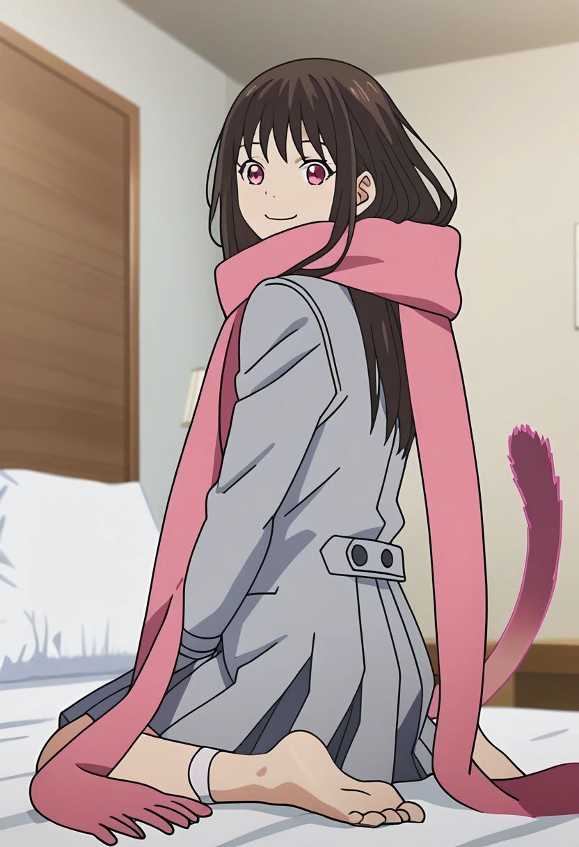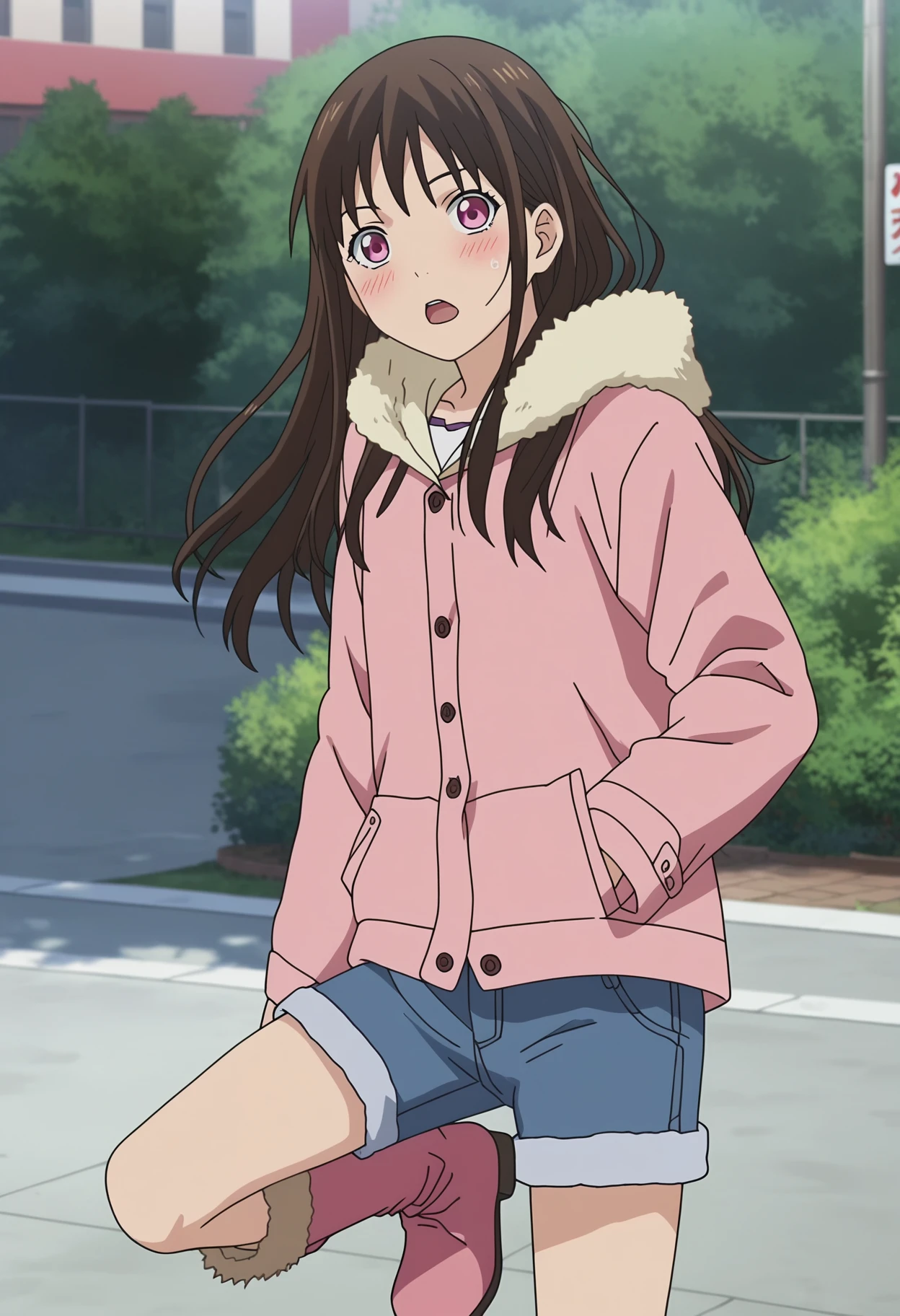 hischool, long hair, black hair, pink eyes, school uniform, pleated skirt, serafuku, sailor collar,