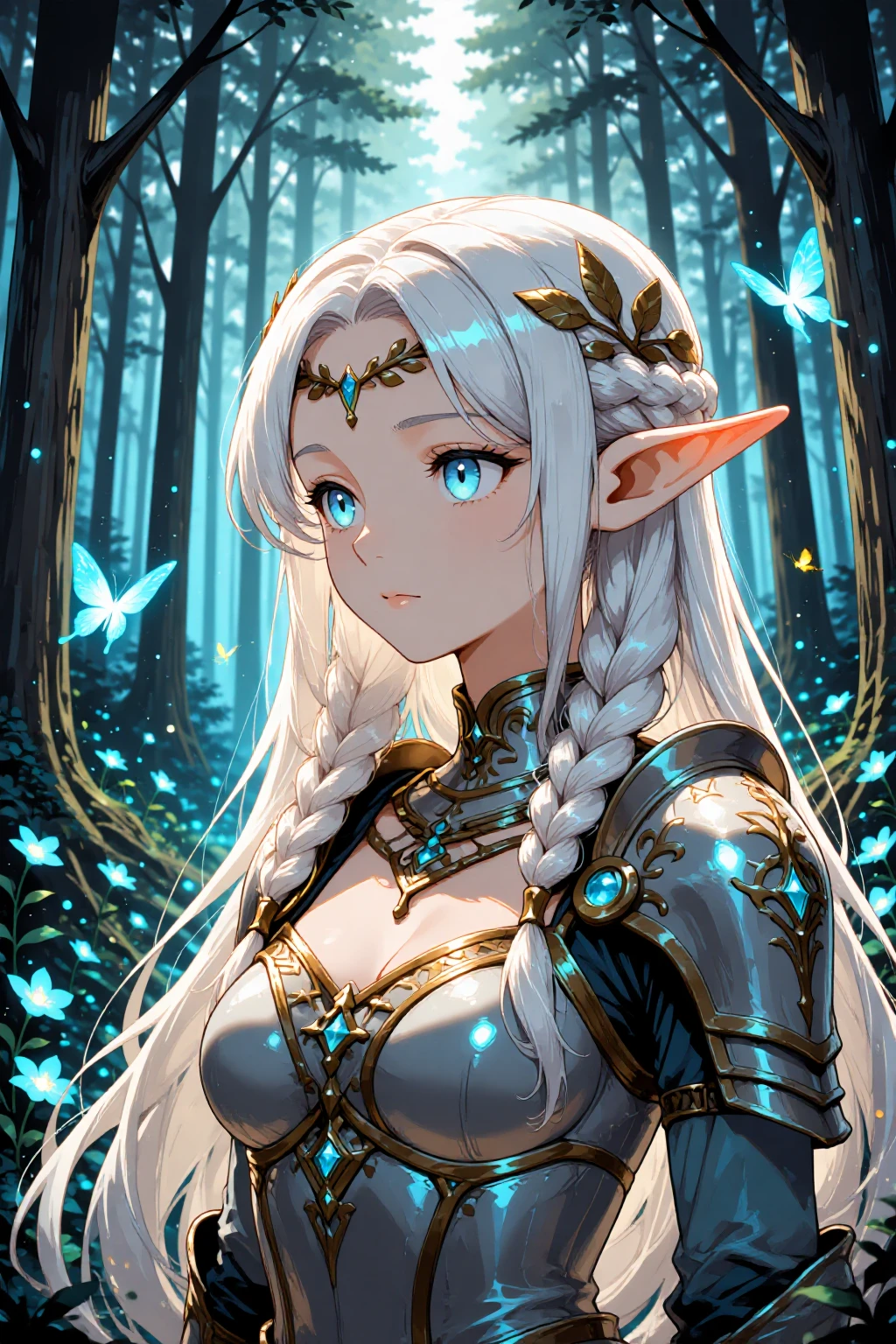 illuminating the scene from above. Dynamic composition, detailed armor,