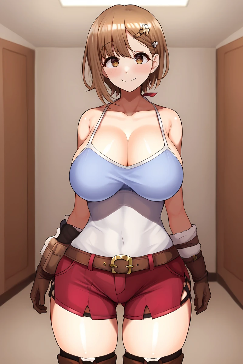 trigger: reisa1in-st0ut, gold clover hairclip, large breasts, short hair