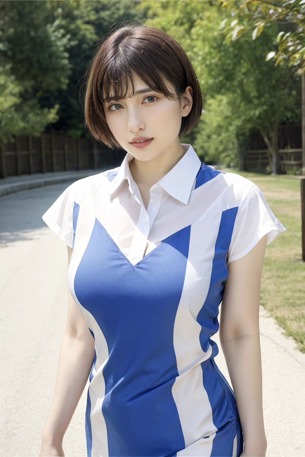 hazukiwakamiya_jav, breasts, short hair, brown hair, parted lips, lipstick