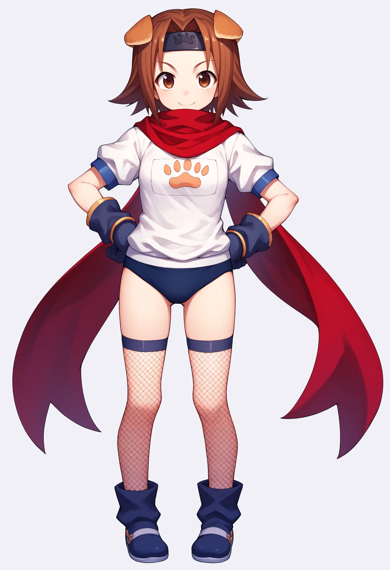 1girl, konoha, brown hair, short hair, brown eyes, headband, dog ears