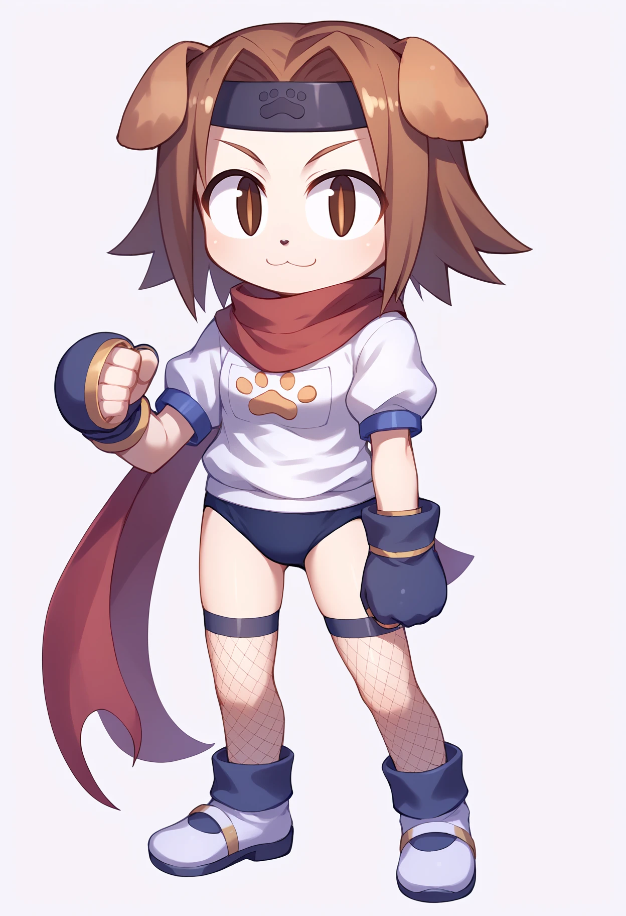 Outfit prompts : red scarf, buruma, fishnet thighhighs, gloves, gym uniform, dog tail