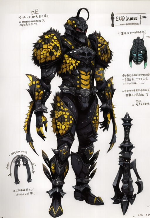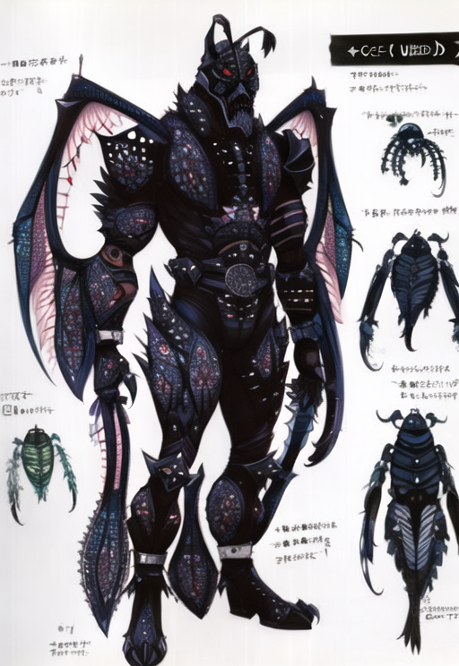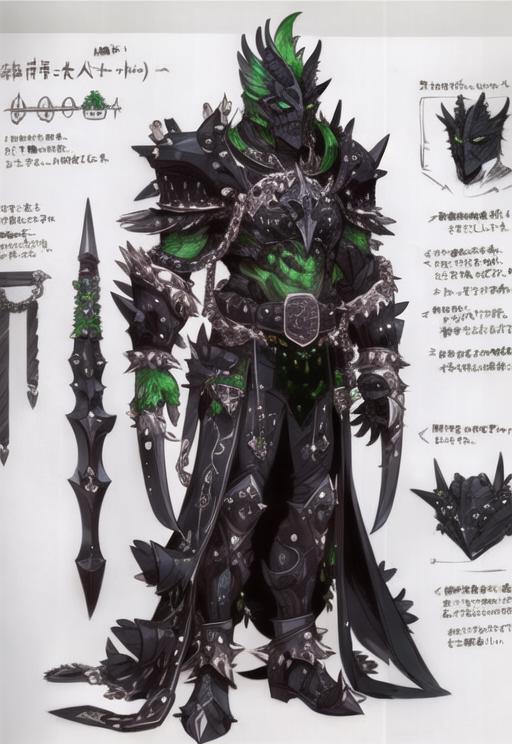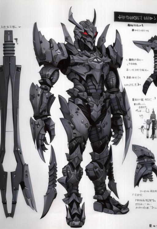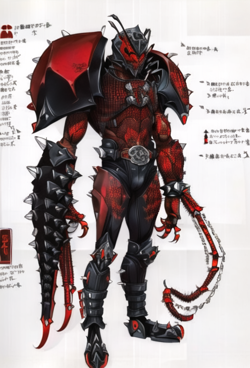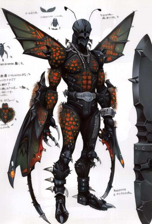 Lora based on Kamen Rider Blade "Undead Green Blood" artbook by Yasushi Nirasawa. Made with Kohya Trainer.