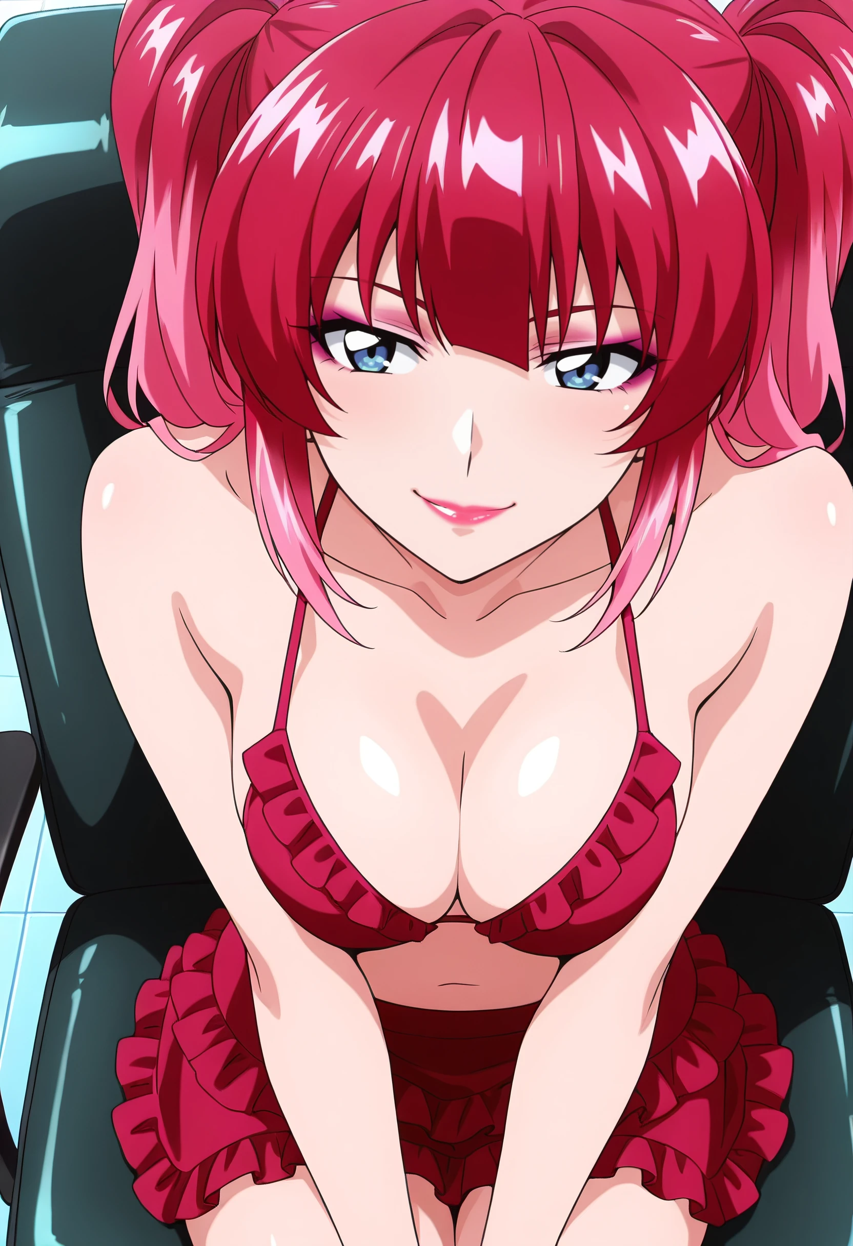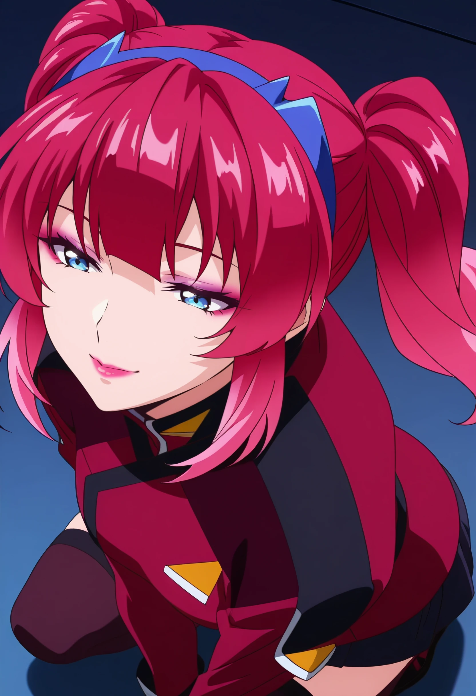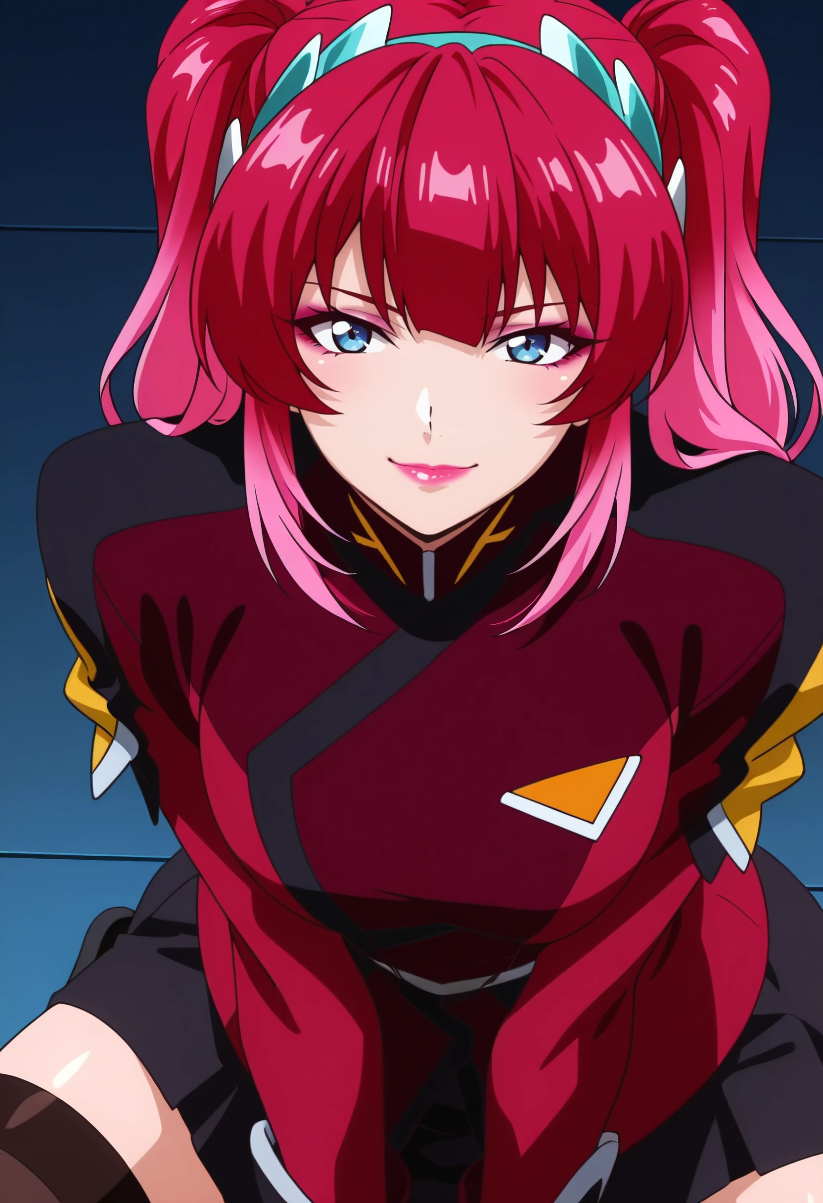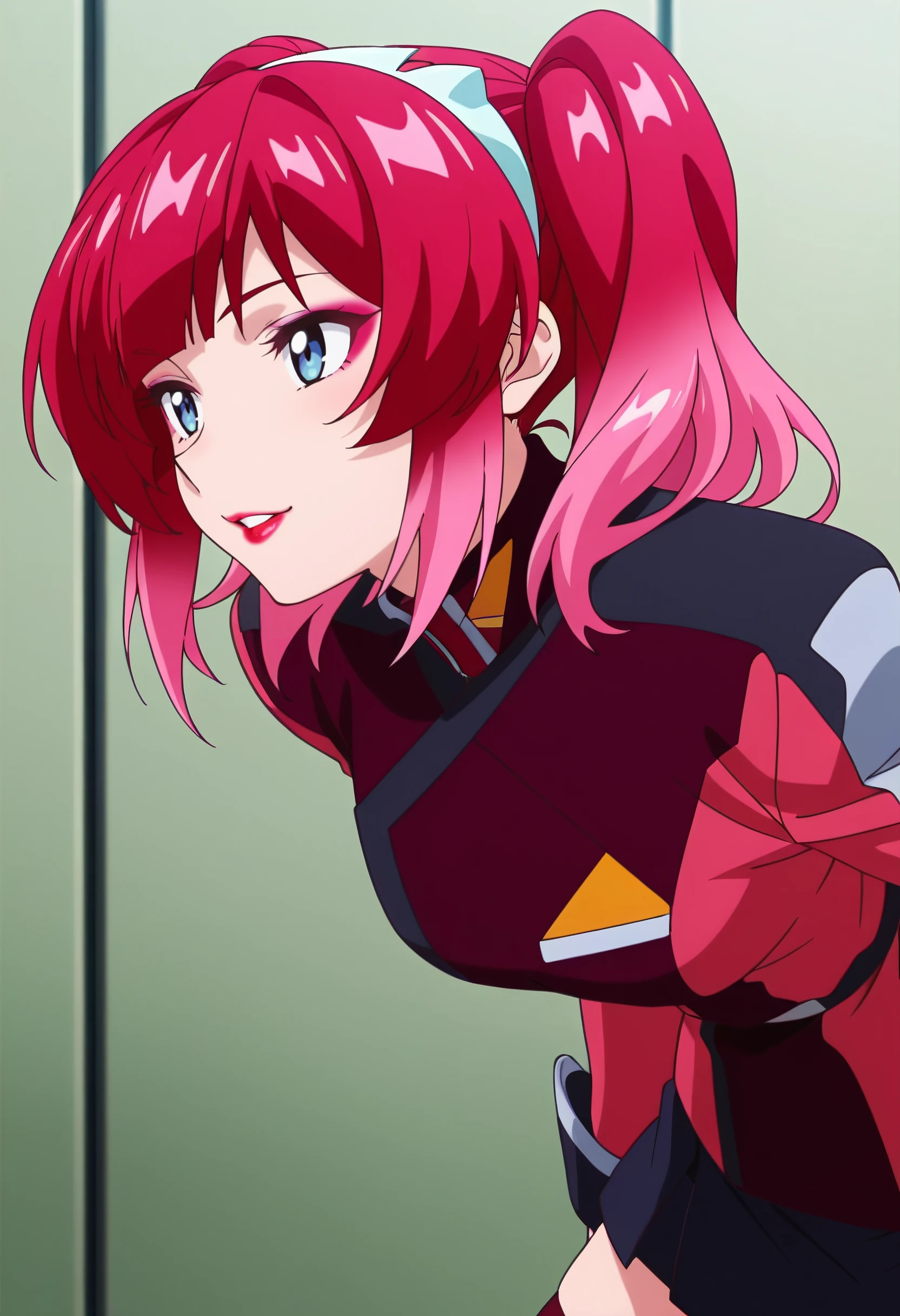 KSGAgnes, pink hair, red hair, long hair, blue eyes, twintails, bangs, sidelocks, lipstick, makeup,