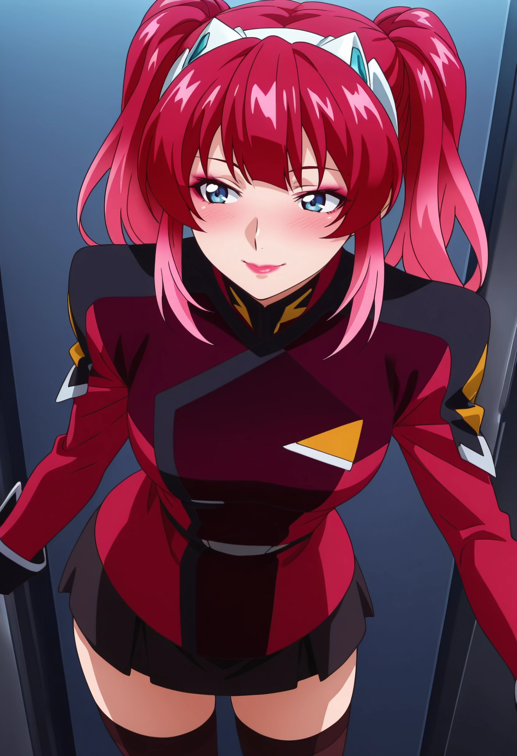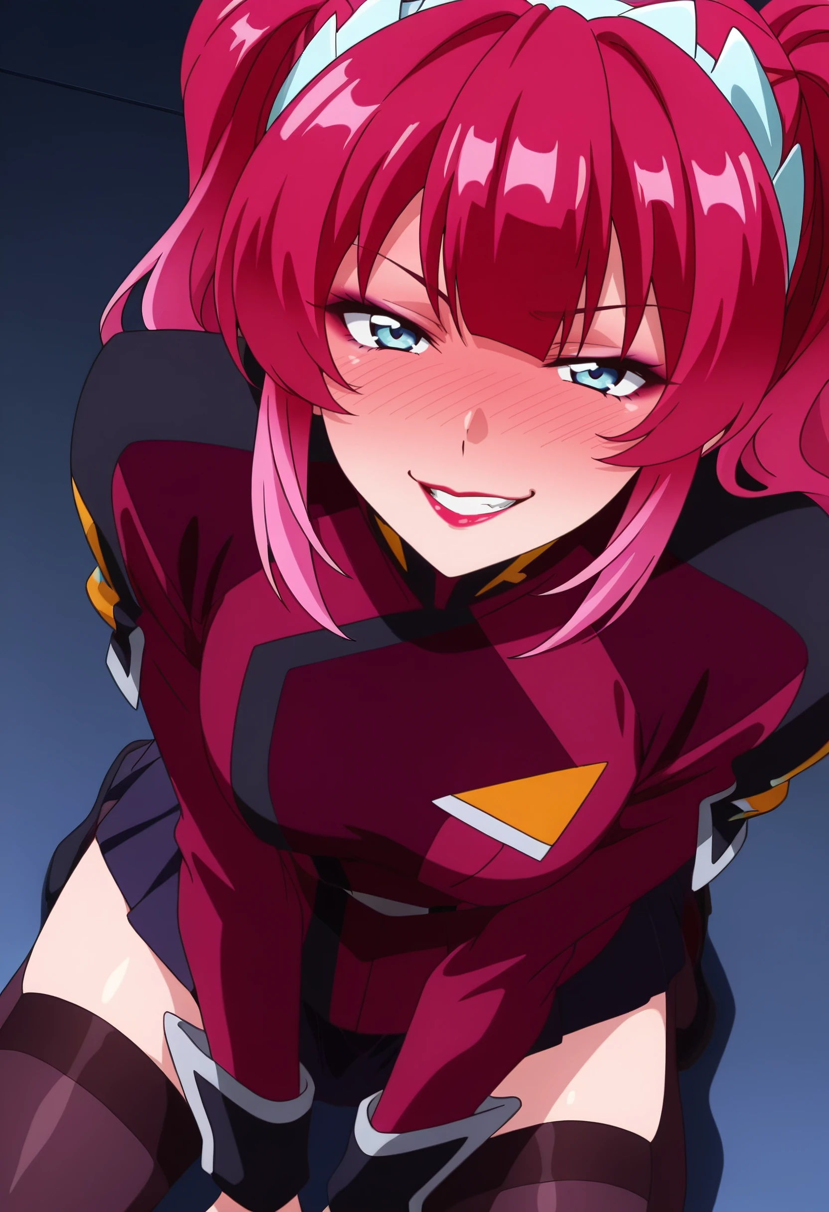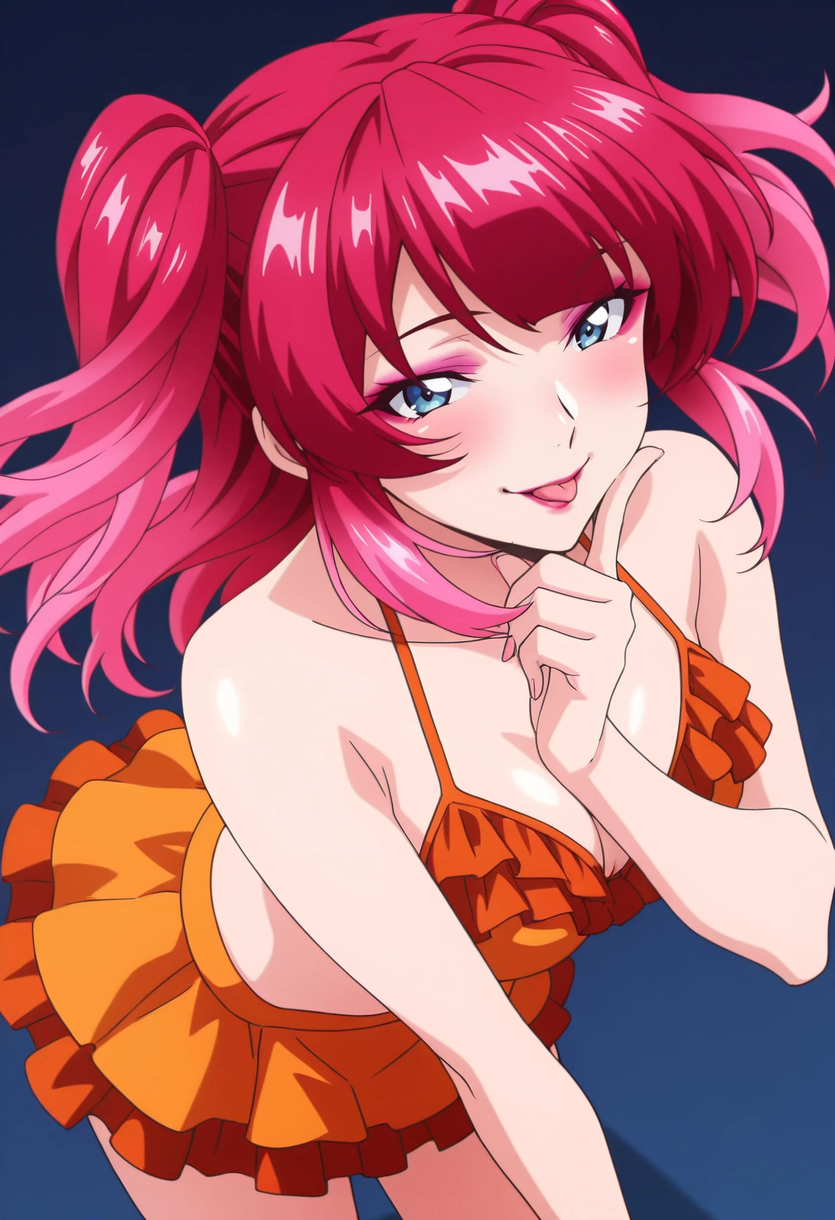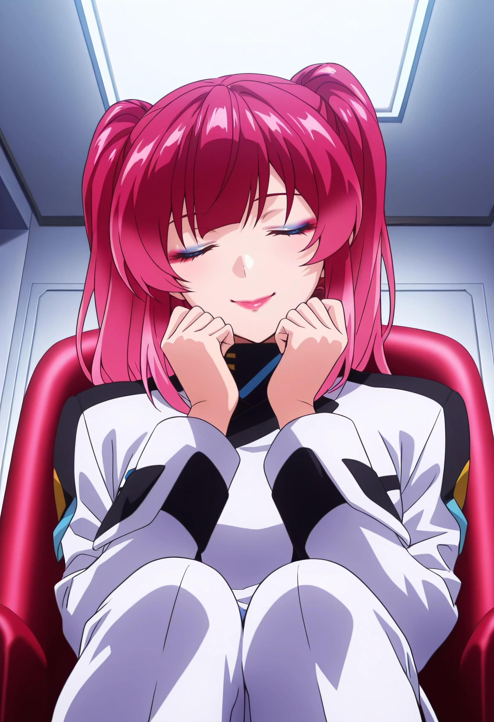 KSGAgnes, pink hair, red hair, long hair, blue eyes, twintails, bangs, sidelocks, lipstick, makeup,