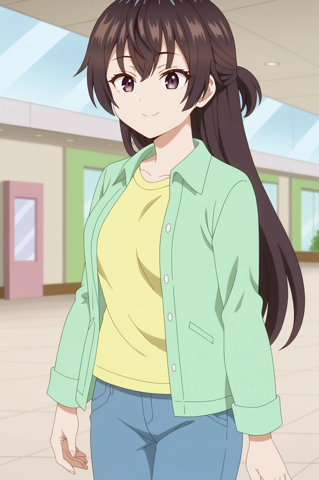 Dating : long hair,yellow shirt,light green jacket,long sleeves,open clothes