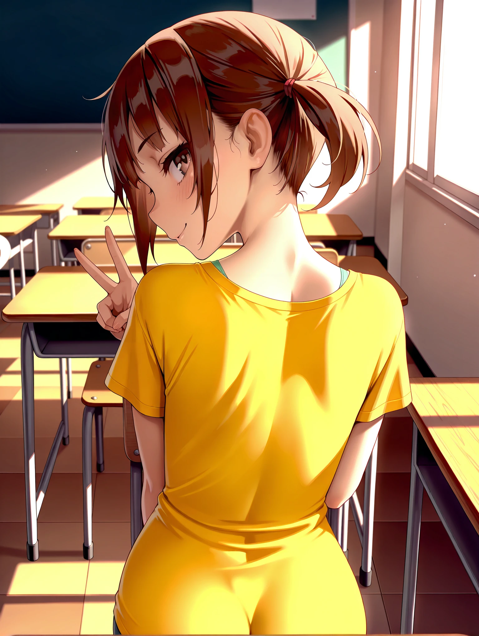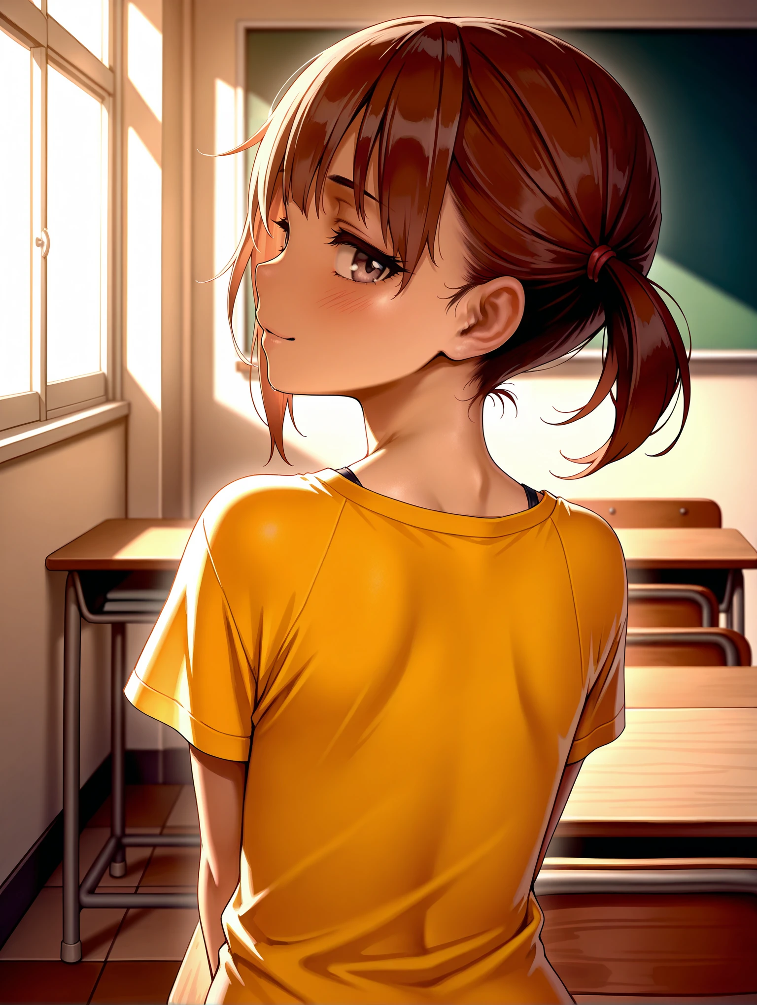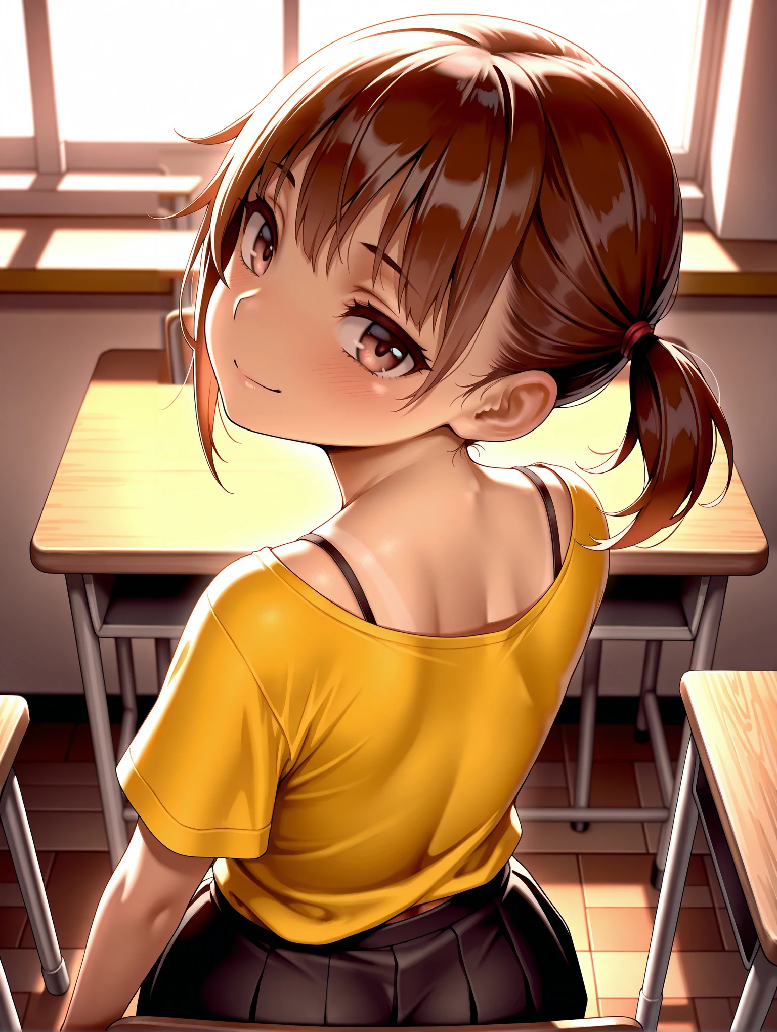 衣装ワード(暫定)・yellow short -sleeved long t -shirt,bra strap,black skirt,