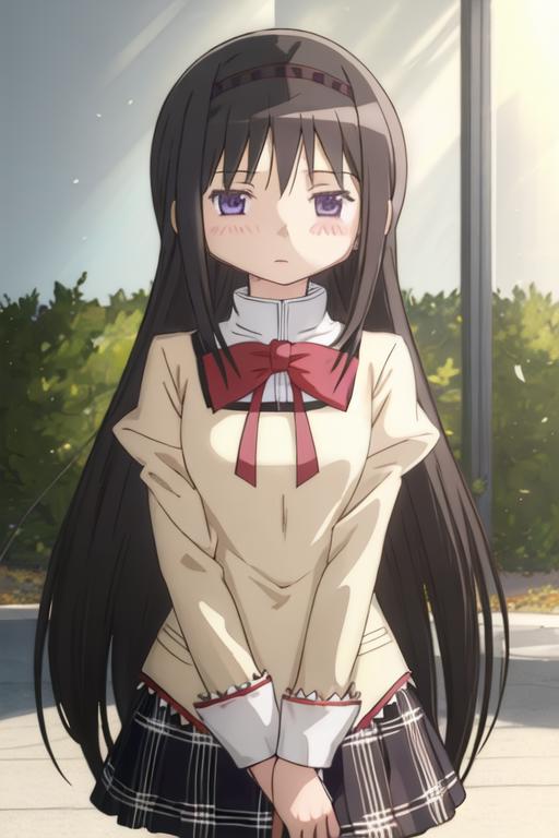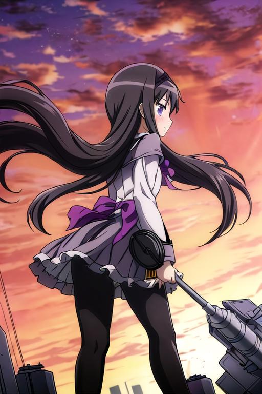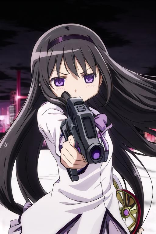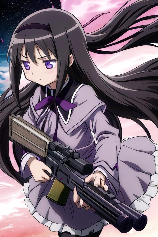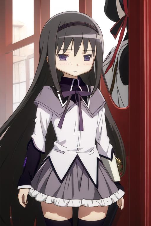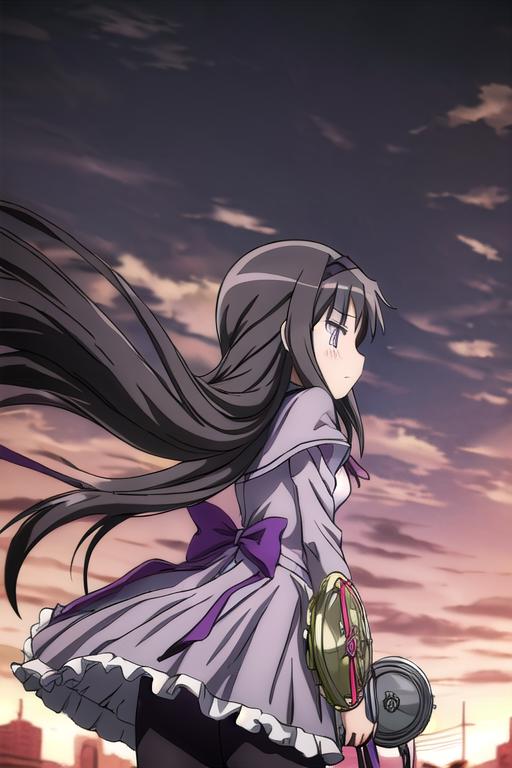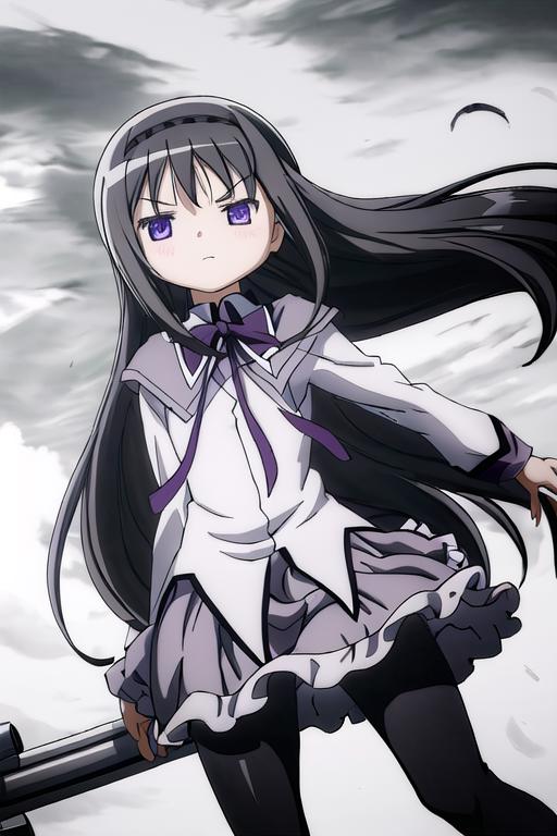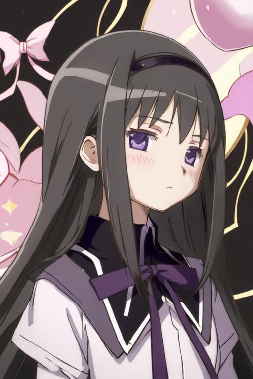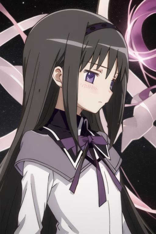 The trigger word is akemi_homura_puellamagimadokamagica, and the recommended tags are best quality, masterpiece, highres, solo, {akemi_homura_puellamagimadokamagica:1.15}, black_hair, long_hair, hairband, purple_eyes, blush.