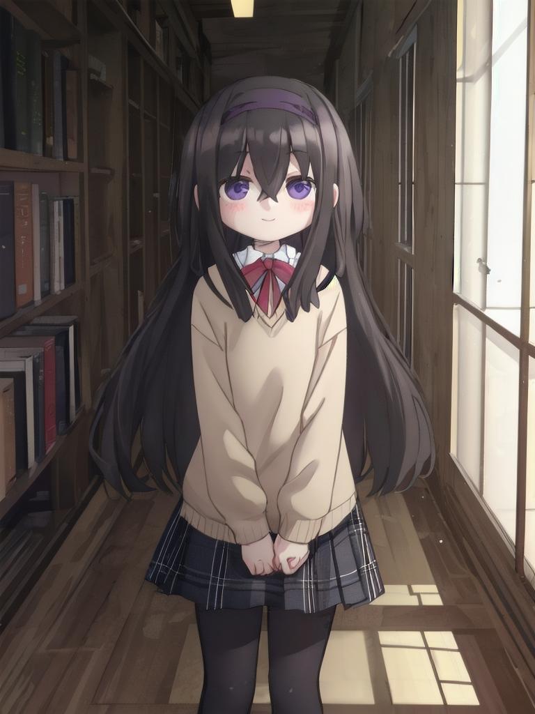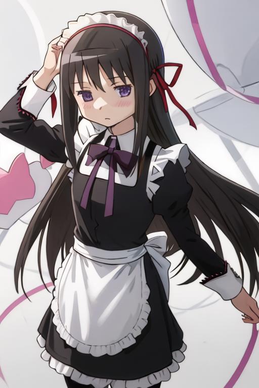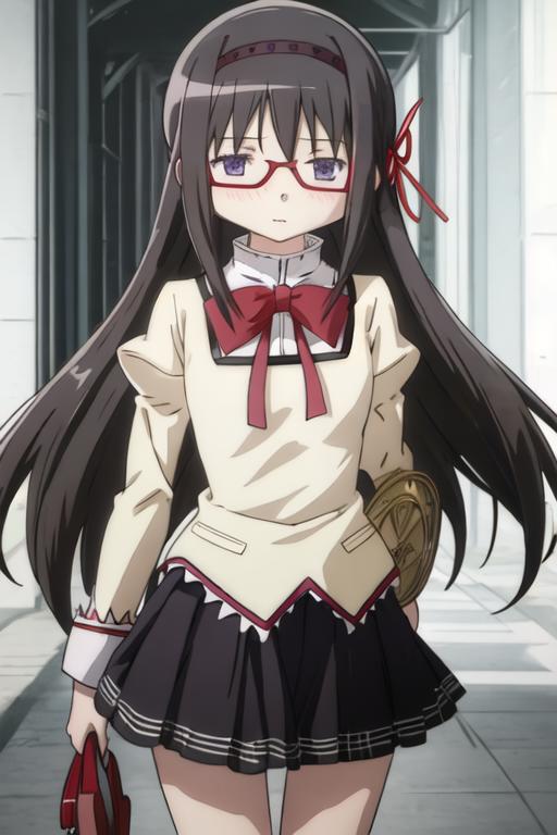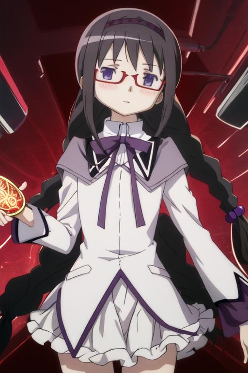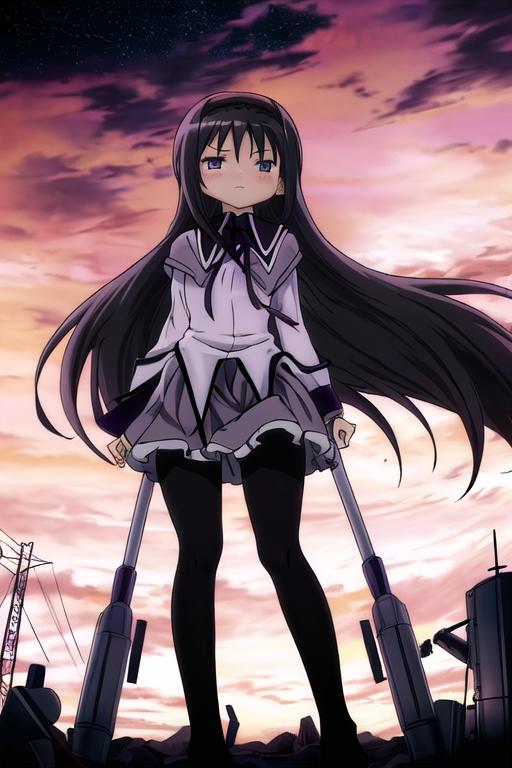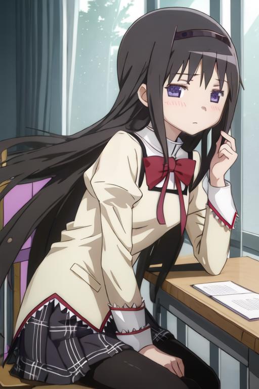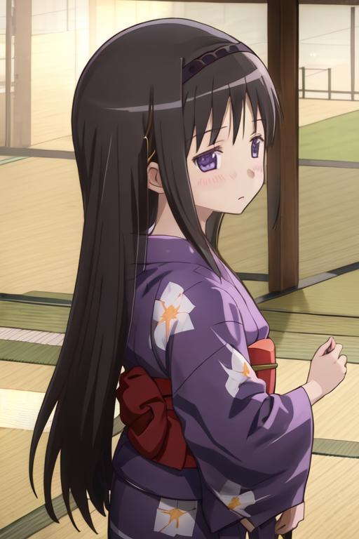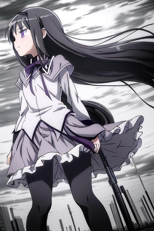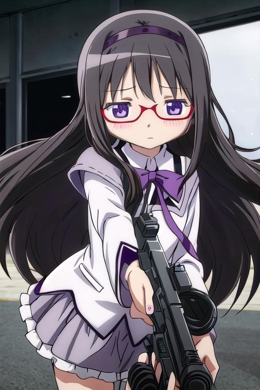 The trigger word is akemi_homura_puellamagimadokamagica, and the recommended tags are best quality, masterpiece, highres, solo, {akemi_homura_puellamagimadokamagica:1.15}, black_hair, long_hair, hairband, purple_eyes, blush.