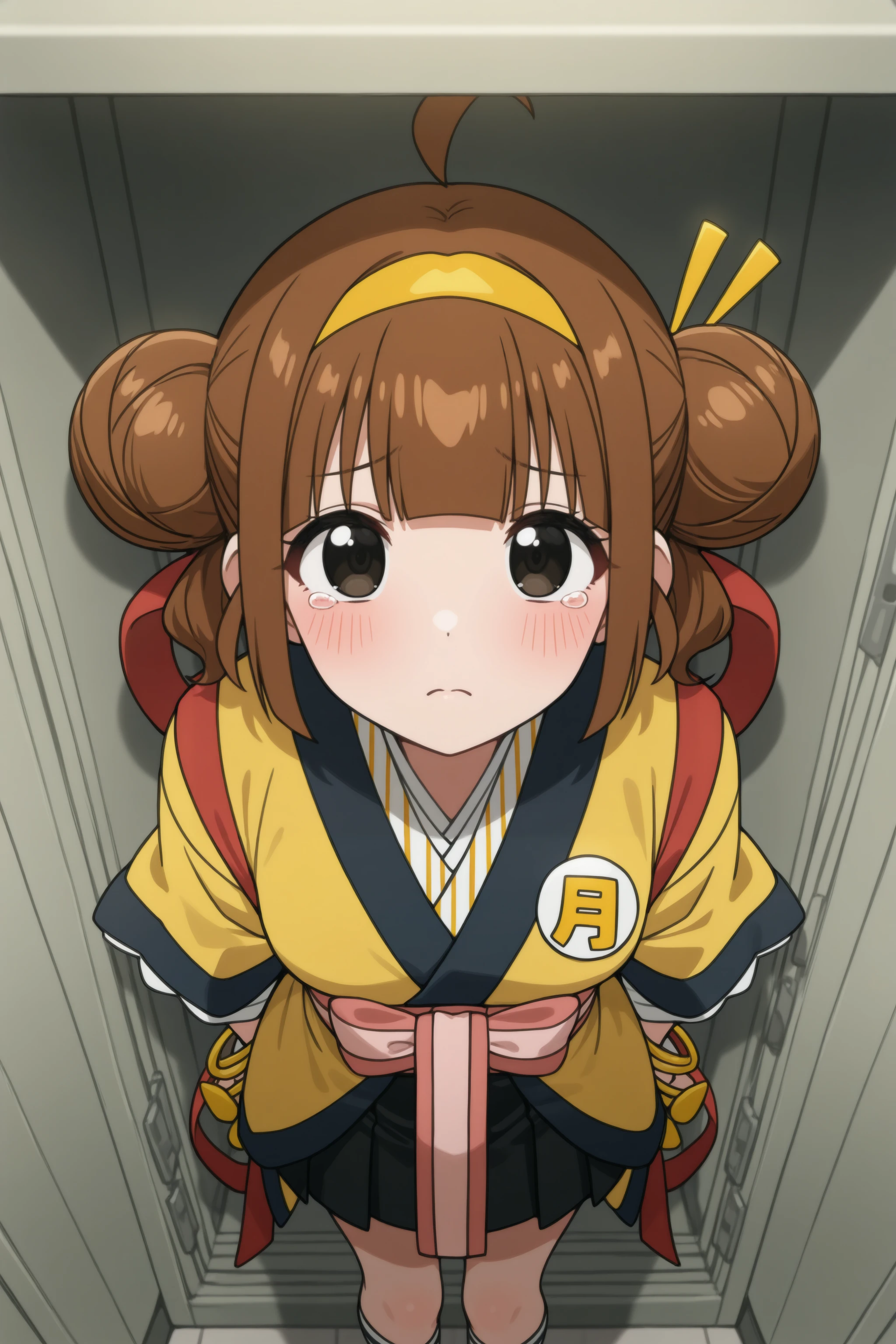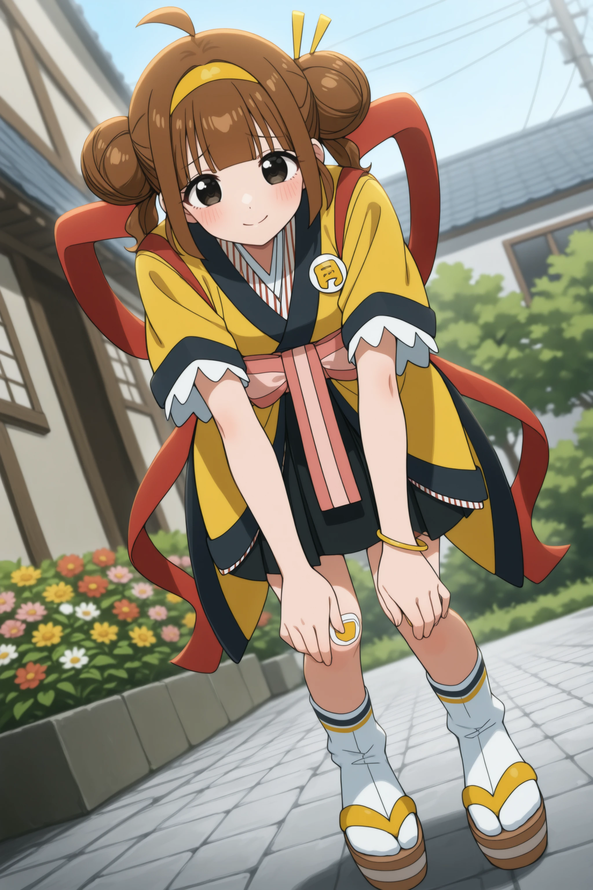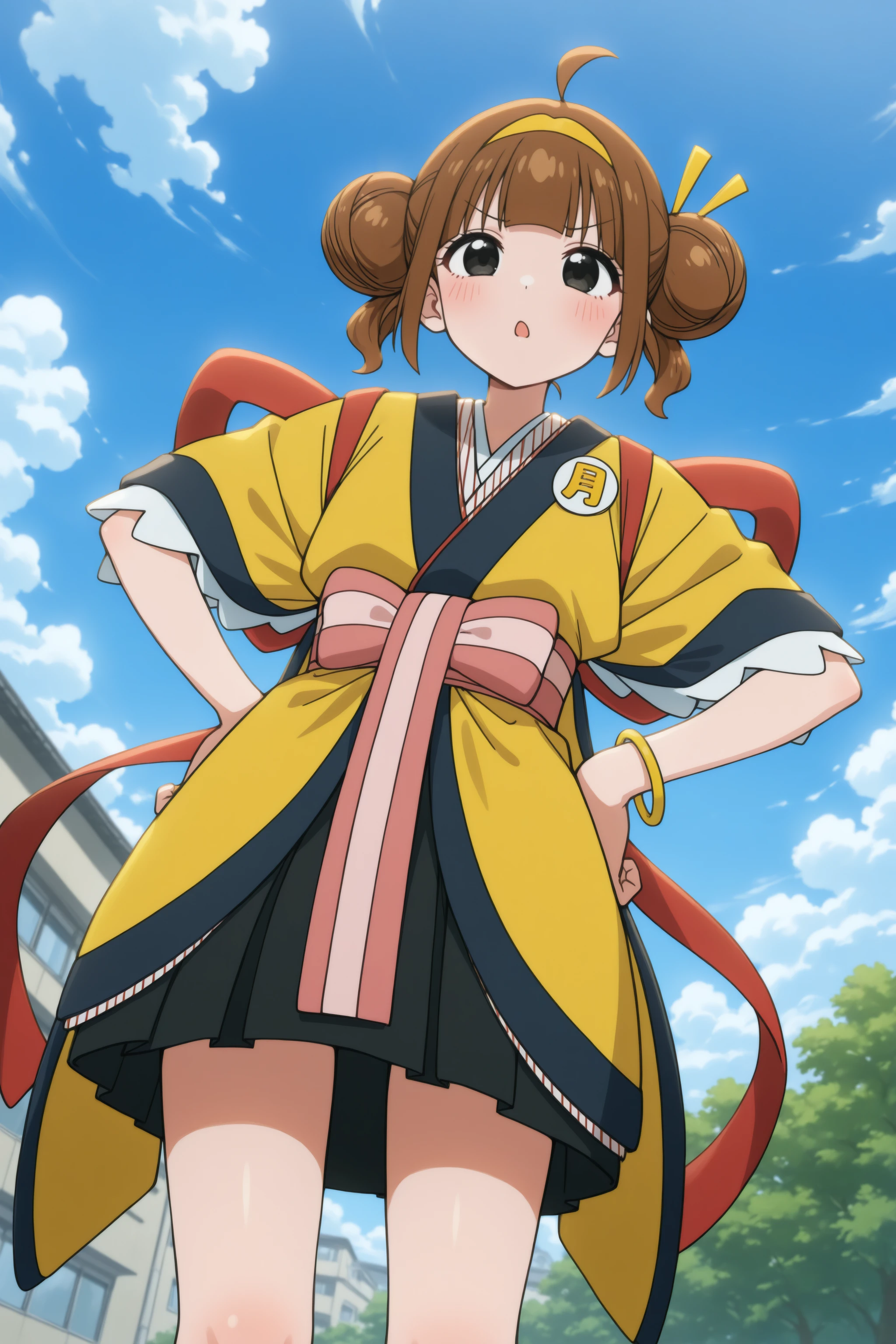 下半身 : sandals,white socks,tabi,zouri,bandaid on knee,pleated skirt 辺りから必要な物を入れて下さい。全部入れるとアホ毛から靴まで描こうとするので全身図??り出ます。コスプレさせる時は服装系抜けば脱ぎます。