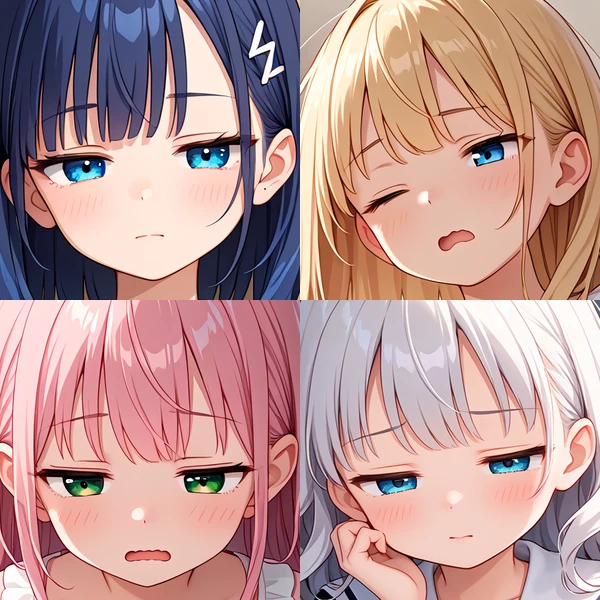 sleepyのプロンプトを追加すると効果が高まりますが、必ずしも必要ではなく、他の感情を表すプロンプトと組み合わせて使うこともできます。