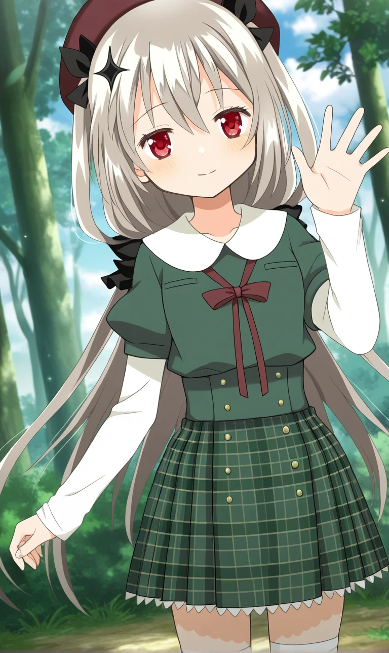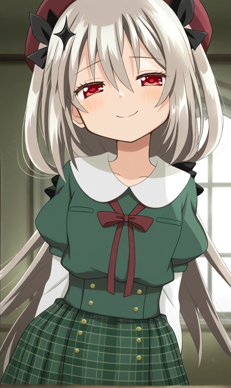 IrinaKushuV4, irina kushu \(school uniform\), magic record: mahou shoujo madoka magica gaiden, platinum blonde hair, black star-shaped hair clip, star \(symbol\),