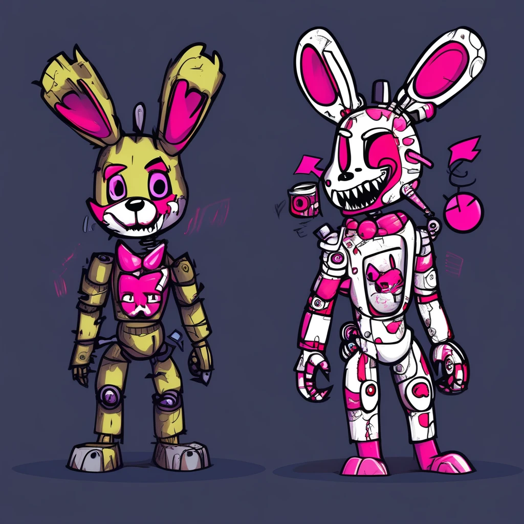 Generates characters in Springtrap and Mangle style. The style belongs to Quiet Tomato, also known as Corporal Shepherd.
