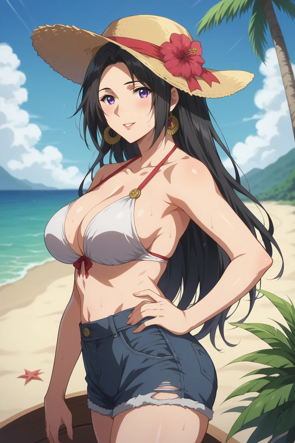 Triggers: KJOcattleya, black hair, purple eyes, long hair, parted bangs,