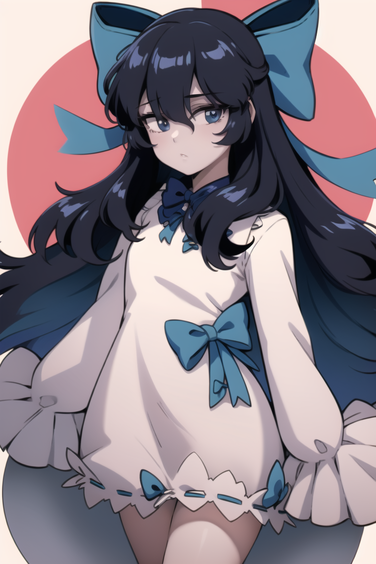 Only face characteristics and hair bound to the activation tag, also try white dress, hair ribbon, pale skin. Sometimes putting long sleeves on negative helps when making her in alternative outfits (its rly hard to remove her sleeves).