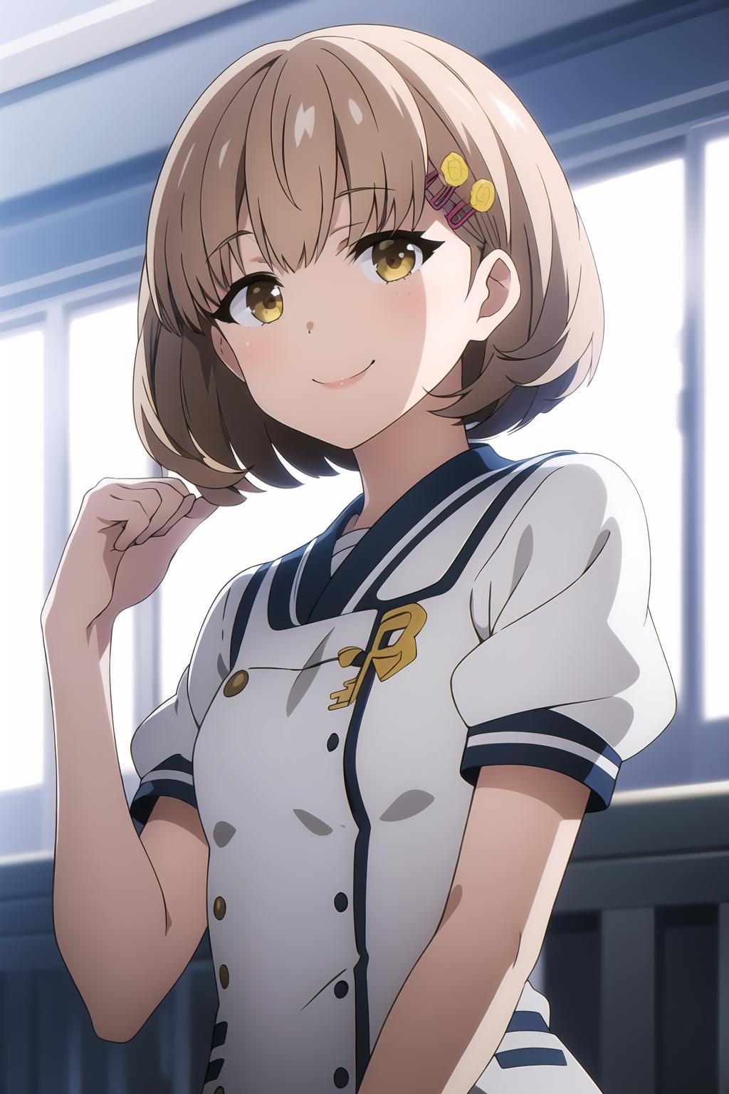 1girl, kimie_kamata, yellow eyes, blonde hair, short hair