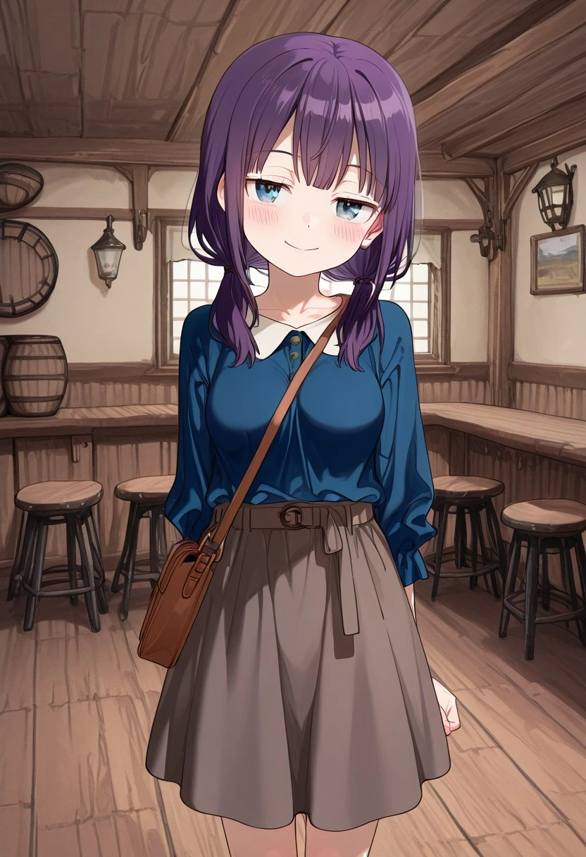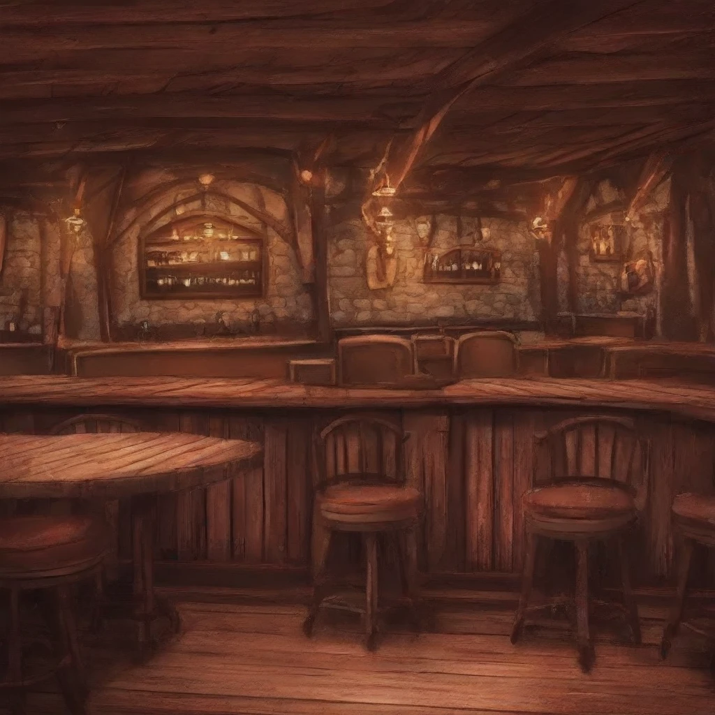 indoors, wooden house, wooden floor, barrel, table, chair,counter, lamp, stone wall