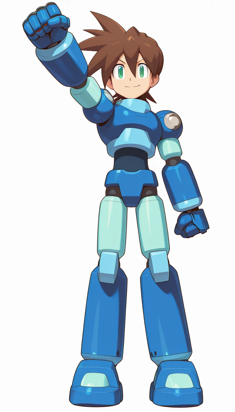 Mega Man Volnutt from video game series 'Mega Man Legends'. Model trained on various upscaled images