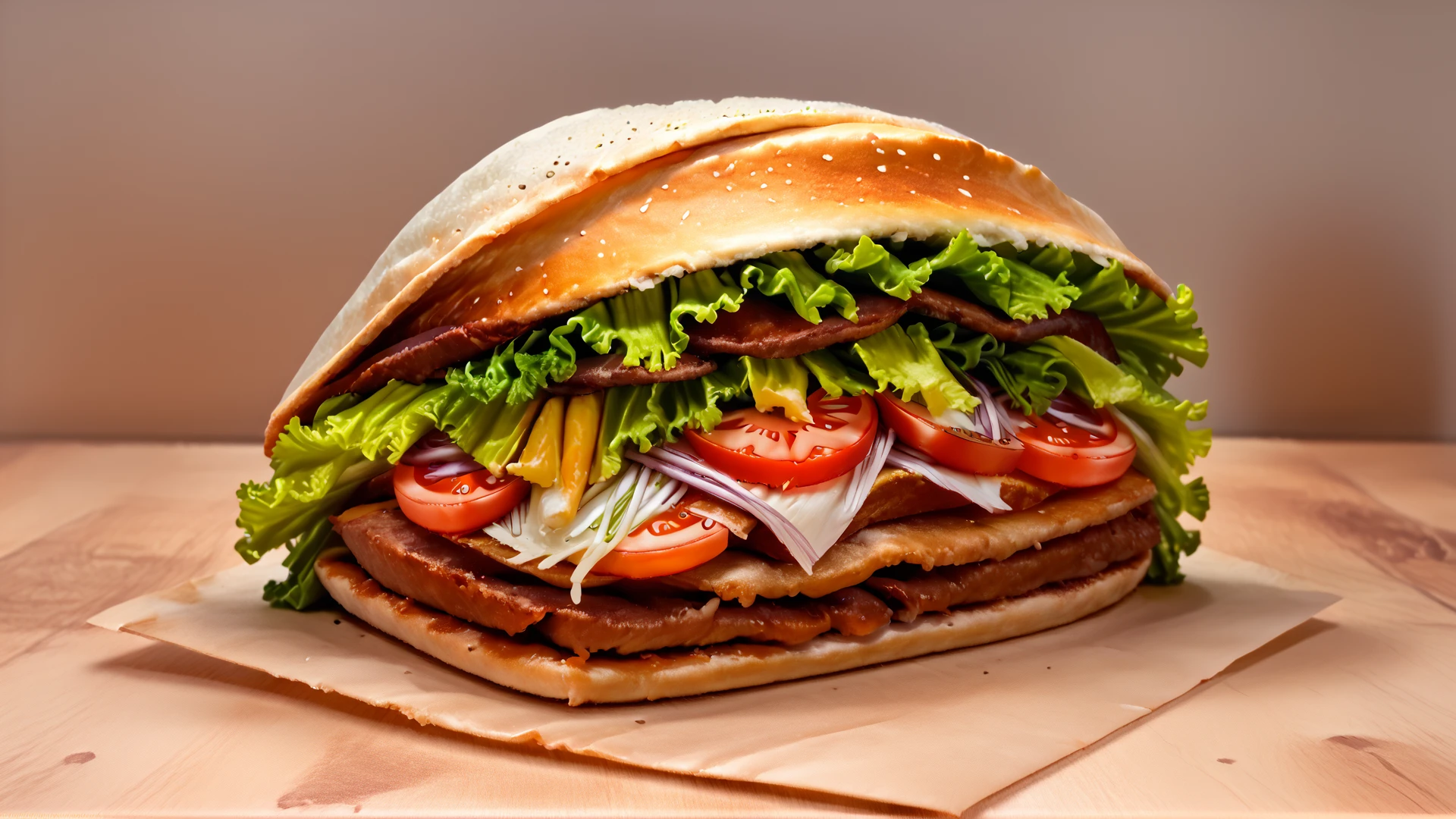 doenerkebab, kebab, flatbread, tomato, onion, lettuce, sauce, food,