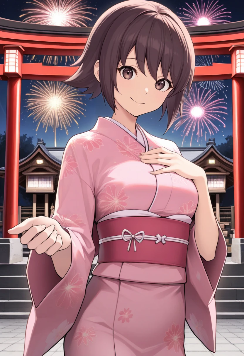 Tags: pr0t4gdx2, brown hair, short hair, blue dress, plaid dress, pink hoodie