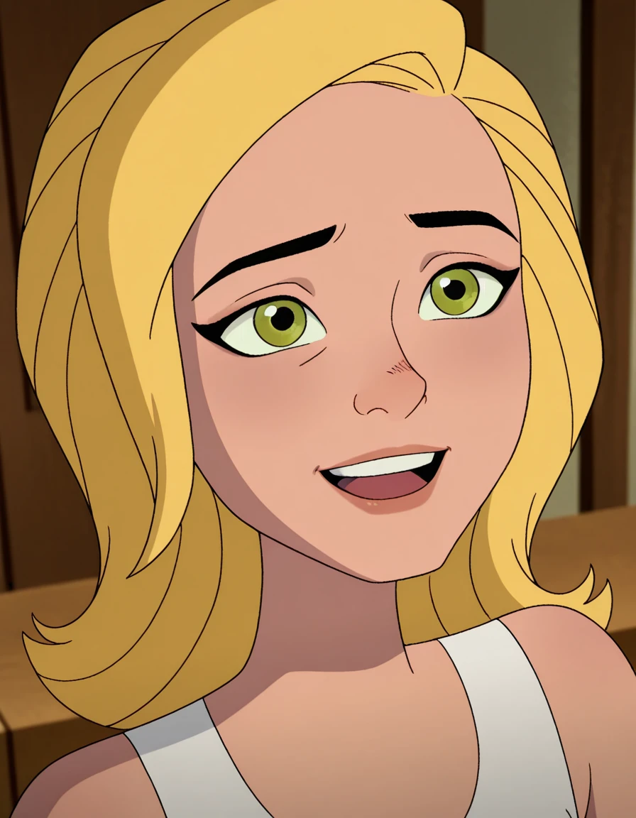 Prompt: sandraTennysonUAF, 1girl, solo, full body, green eyes, medium hair, blonde hair, lips, lipstick, breasts, red shirt, v-neck, black pants, mature female, dark-skinned female,Recommended LoRA Weight: 1.0