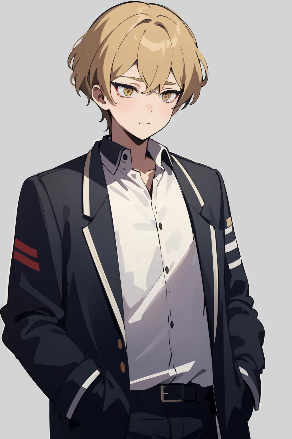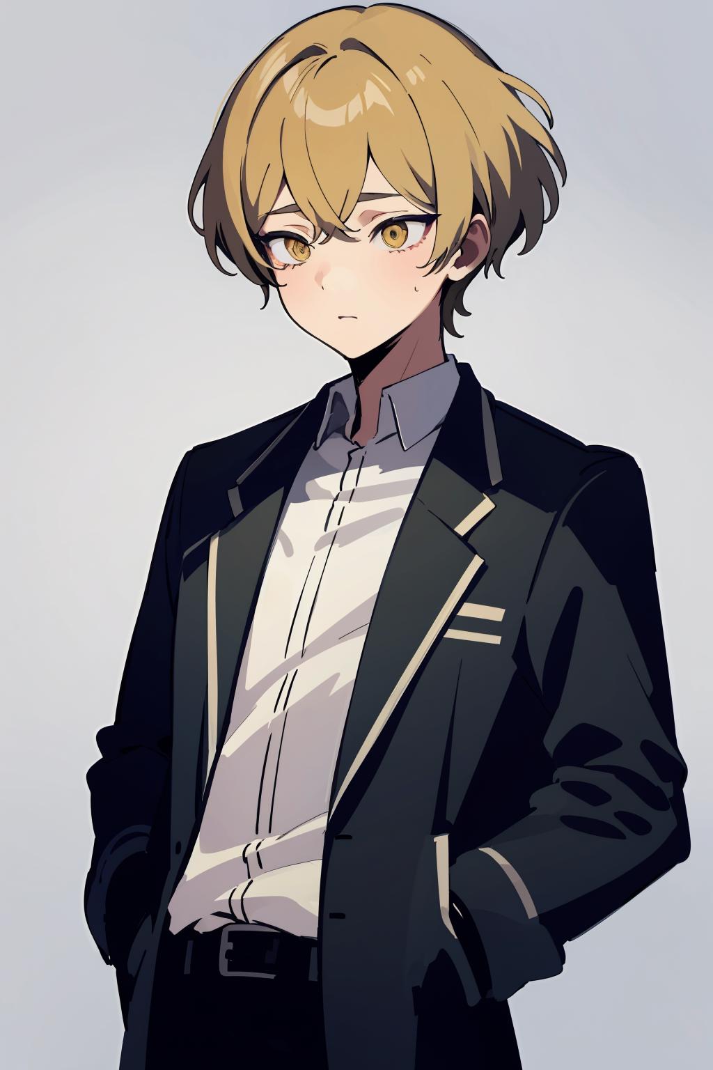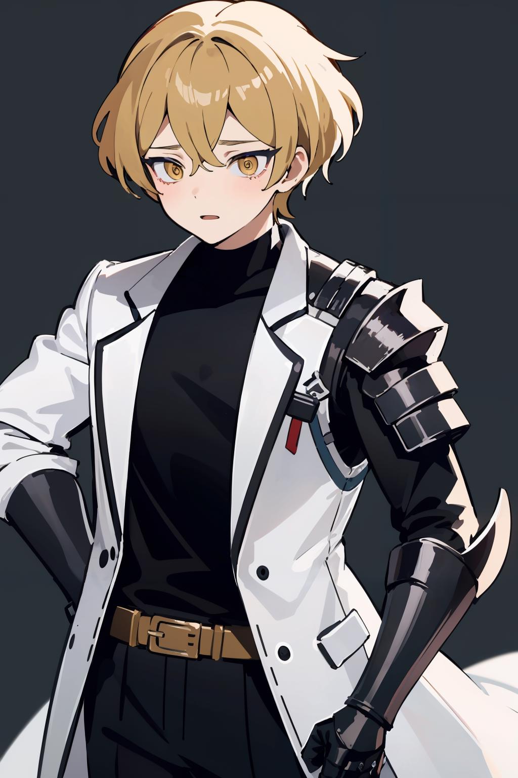 Optional words: short hair,blonde hair,yellow eyes