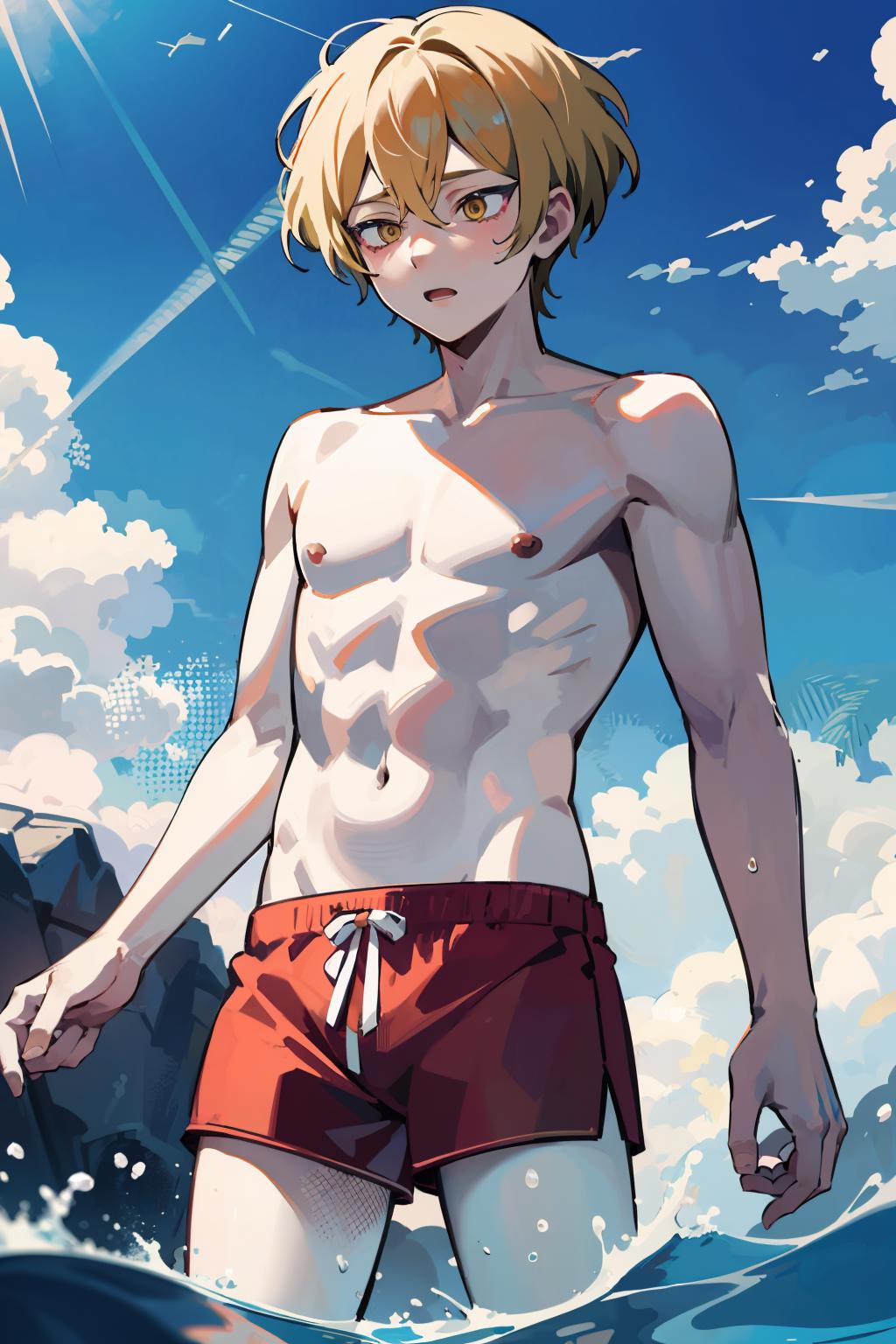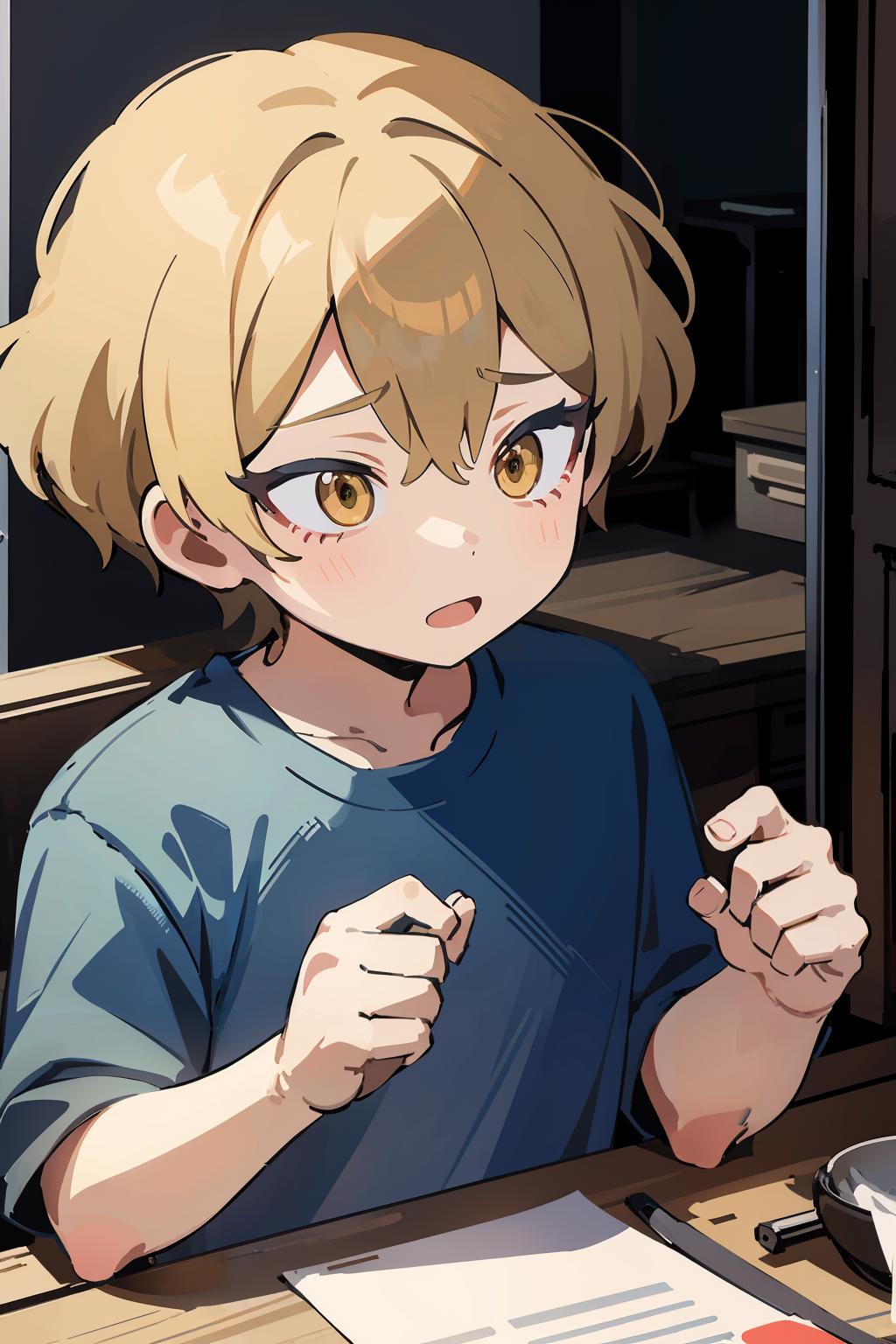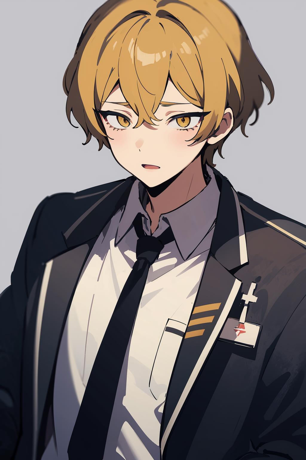 Optional words: short hair,blonde hair,yellow eyes