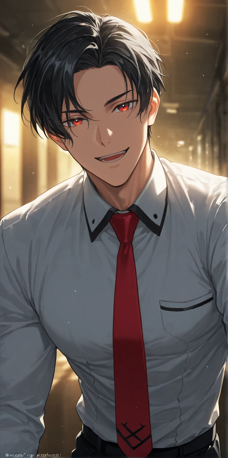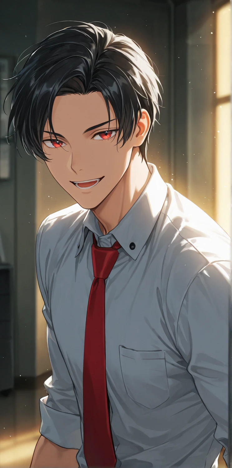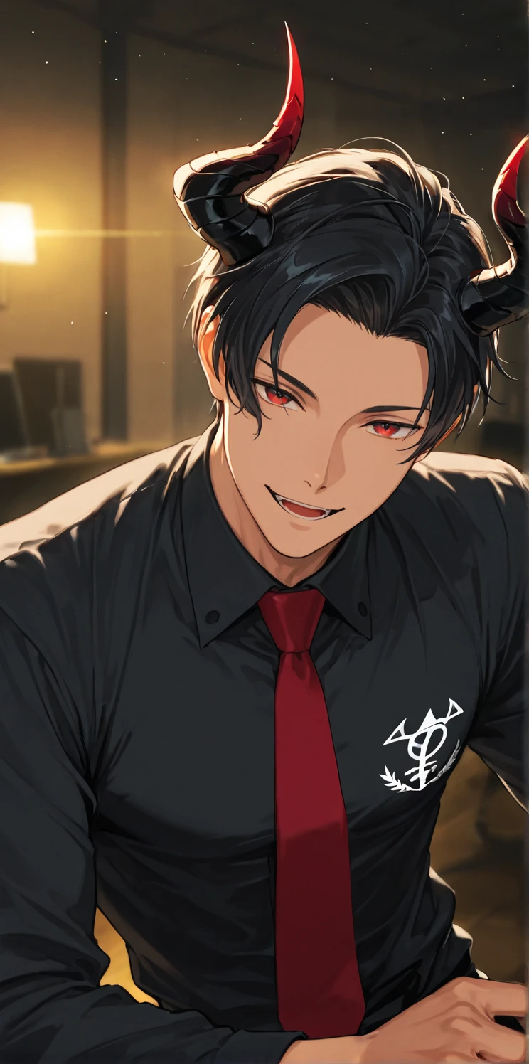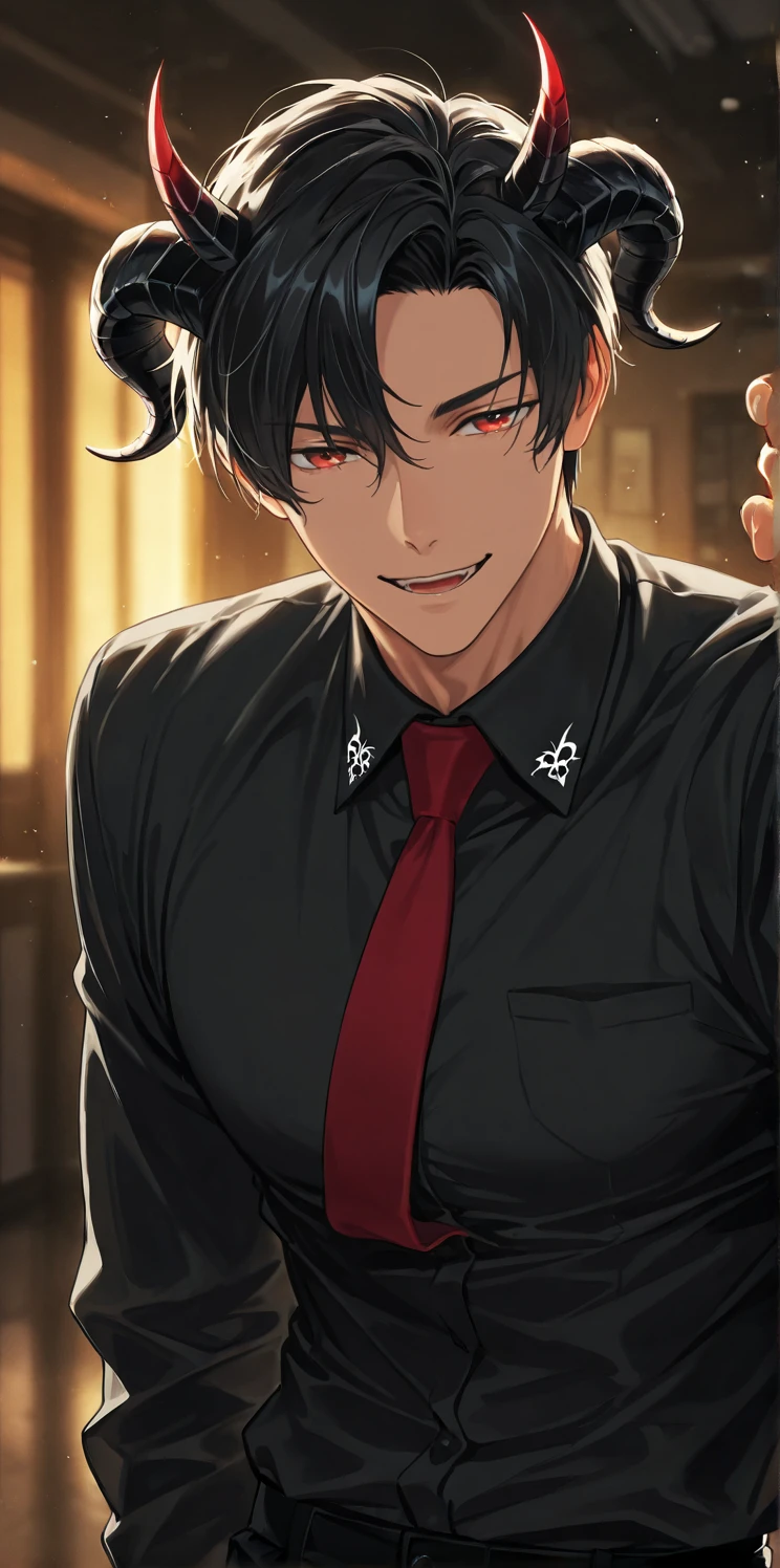 lucifer,black hair,red eyes