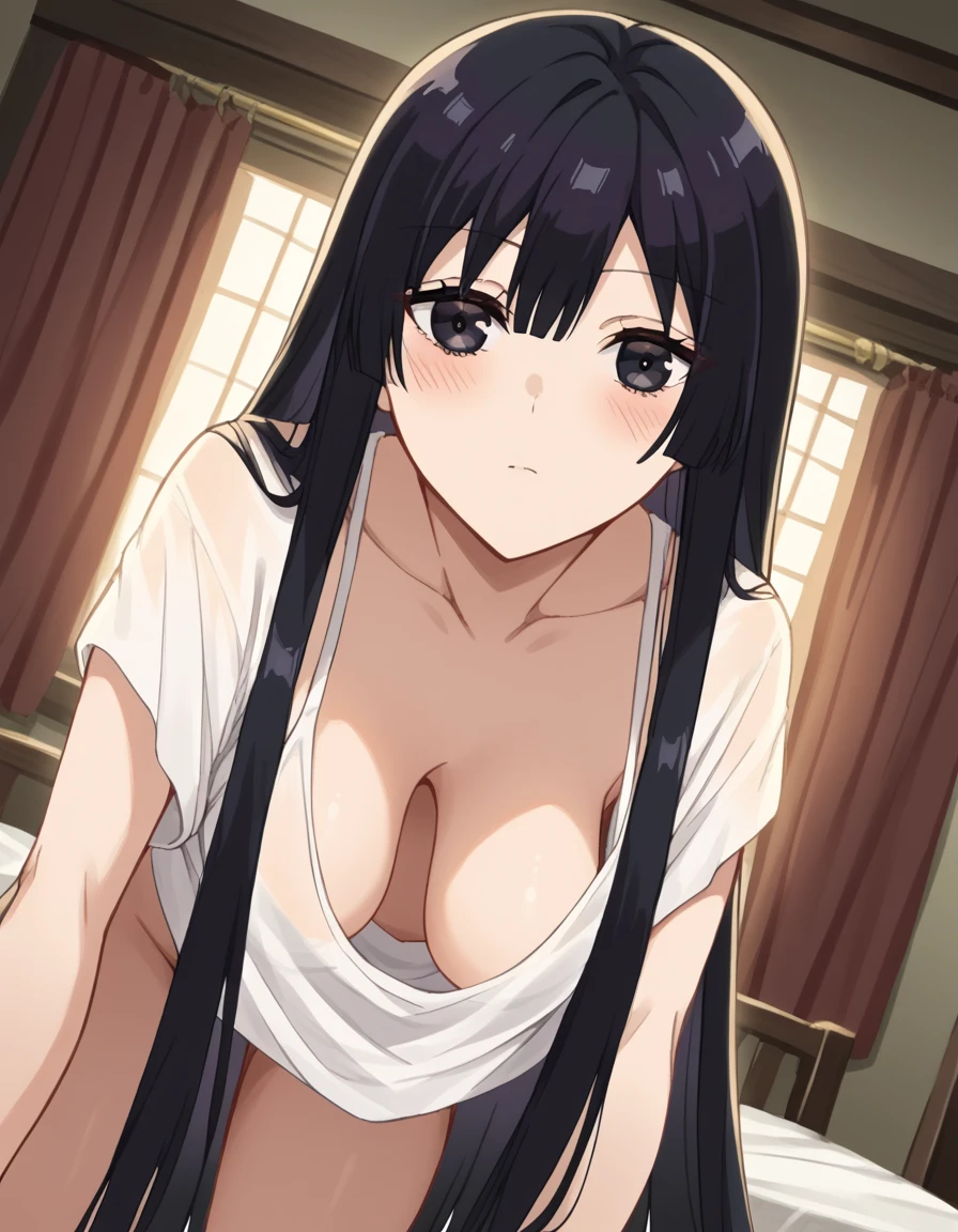 <lora:yumiella-dolkness-s1-ponyxl-lora-nochekaiser:1> yumiella dolkness, long hair, bangs, black hair, very long hair, black eyes, hime cut,