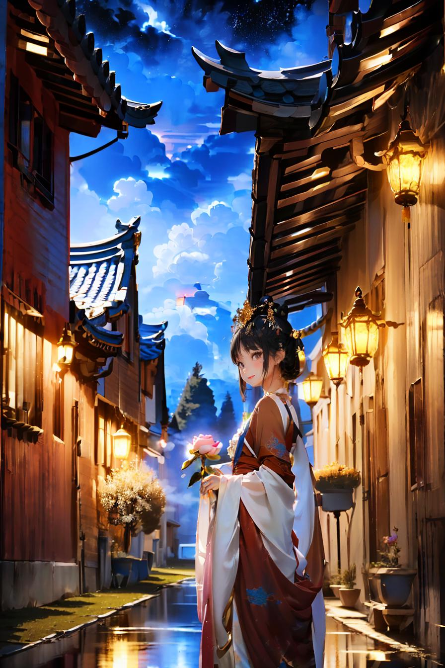 推荐配合使用的lora:墨心、小人书、芳菲、唐风汉服