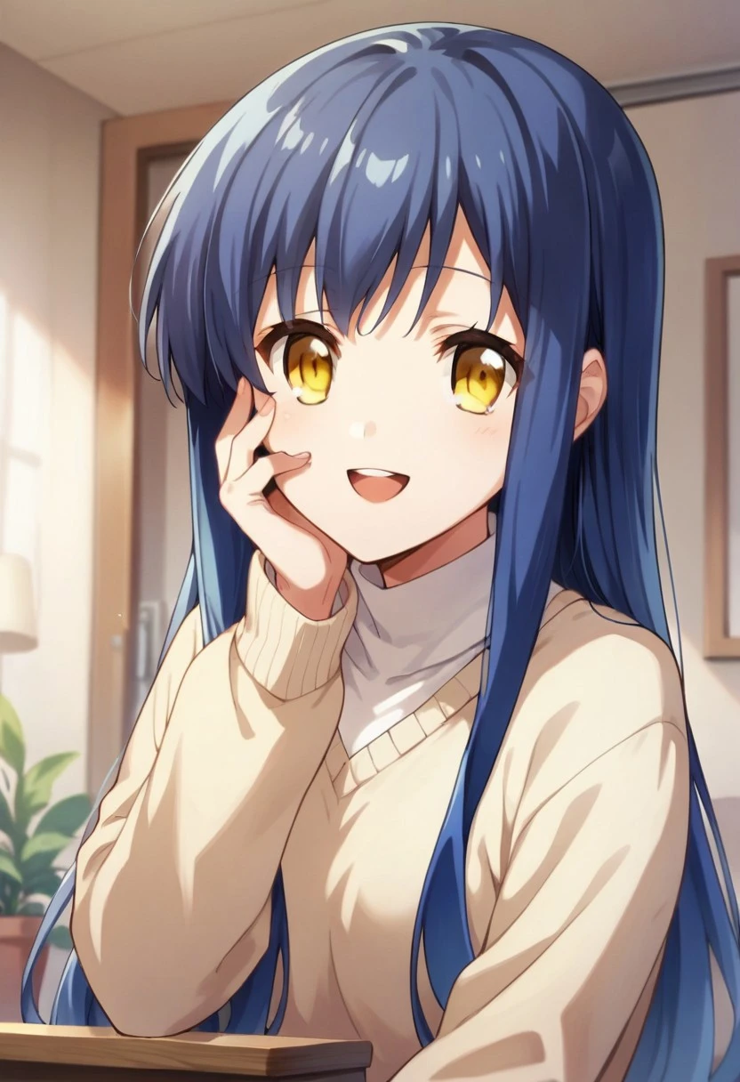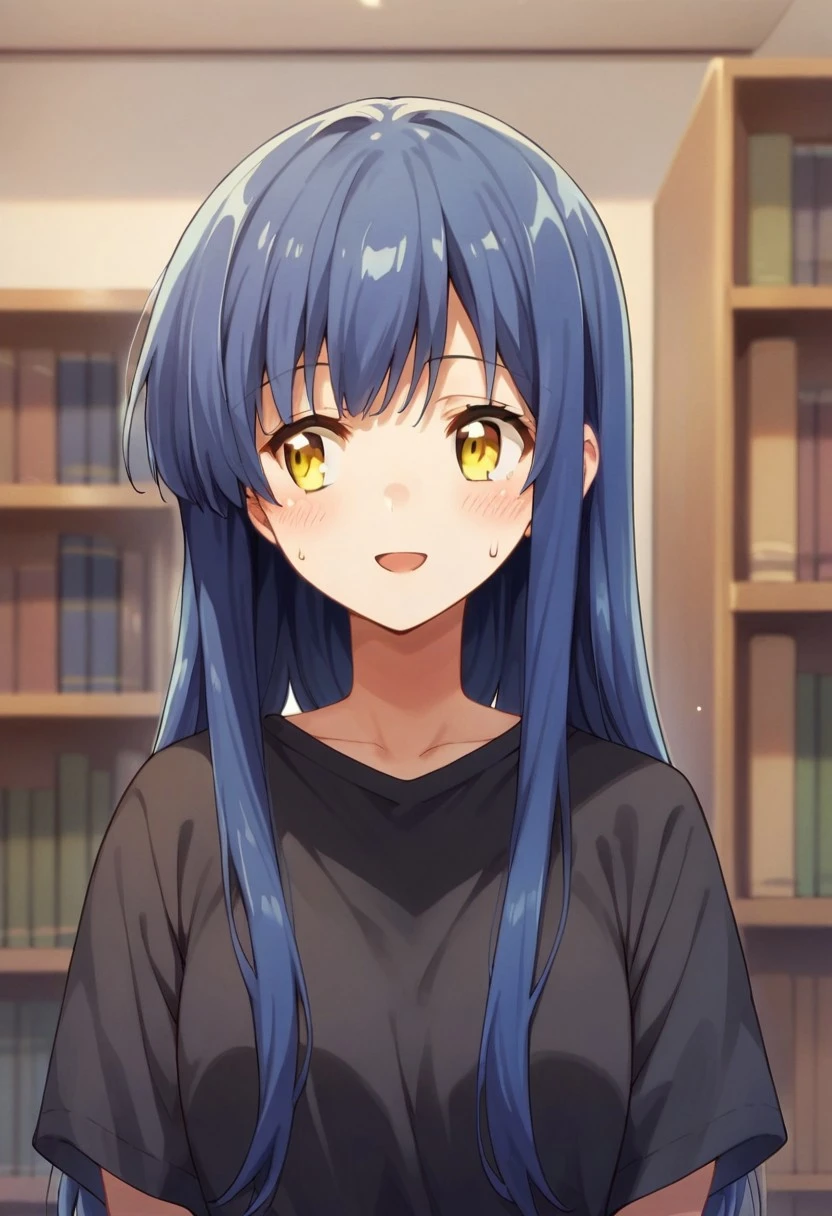 Trigger Words: takabane risa, long hair, blue hair, yellow eyes
