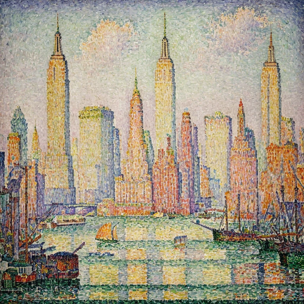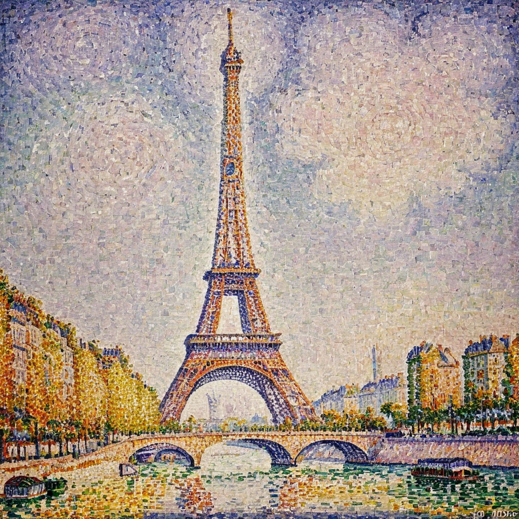 Model trained on "dotted" paintings by Paul Signac (Pointillism). Trigger word: AH_Signac