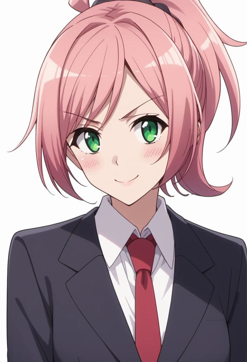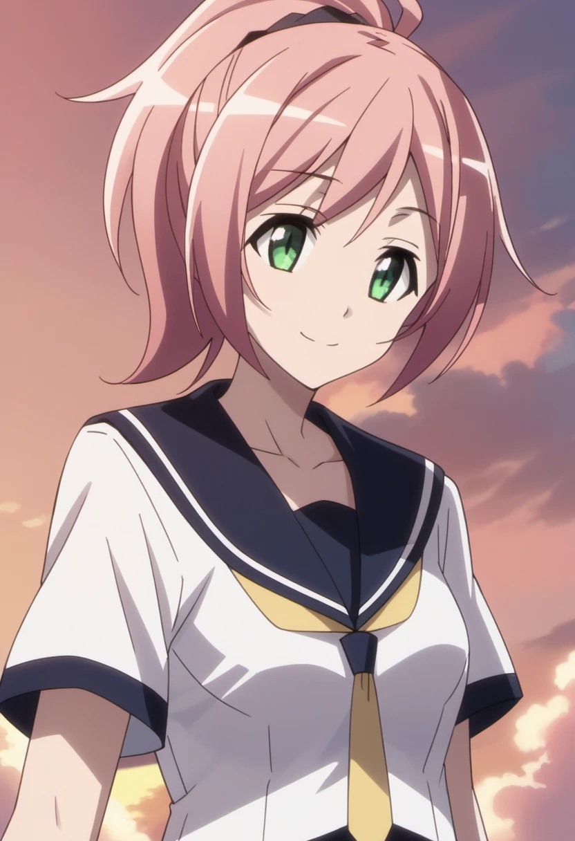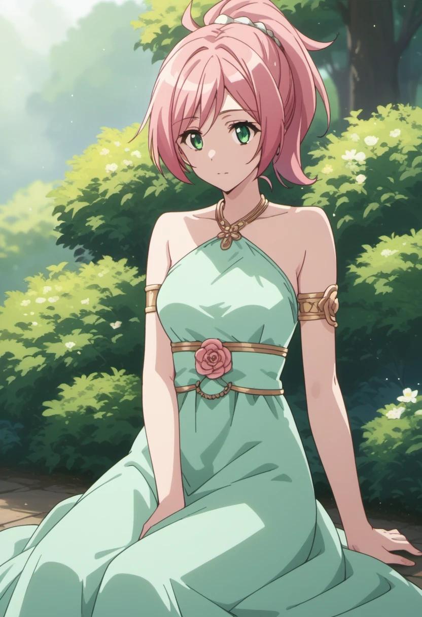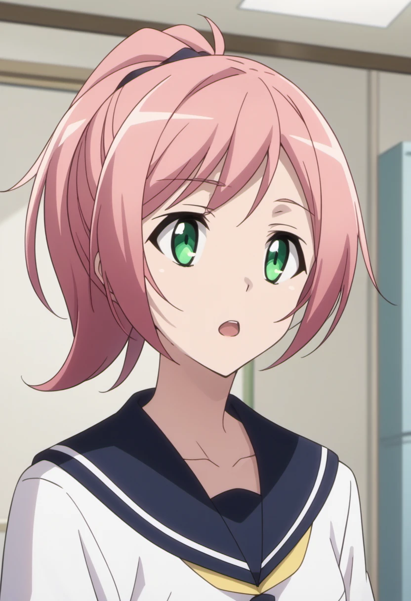 Trigger Words: sakurada misaki, pink hair, green eyes, ponytail