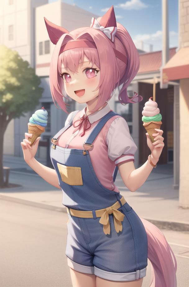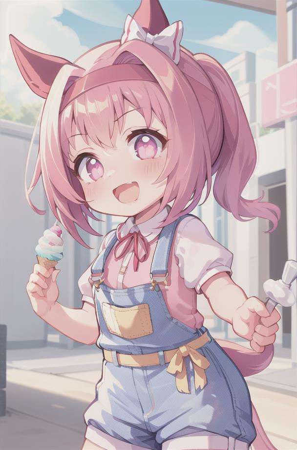 haru urara,overalls,overall shorts,pink shirt,