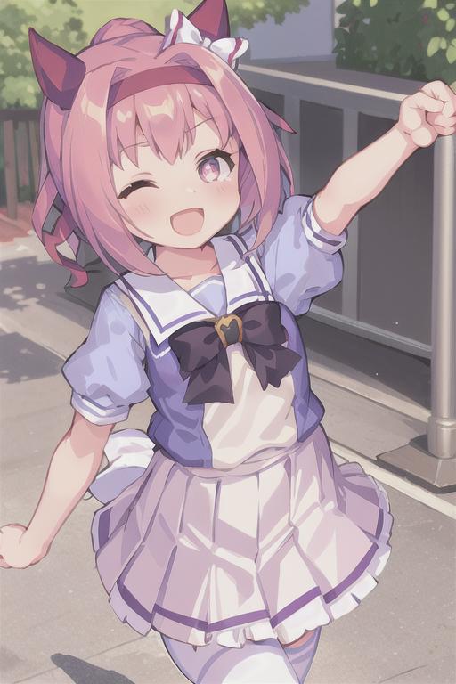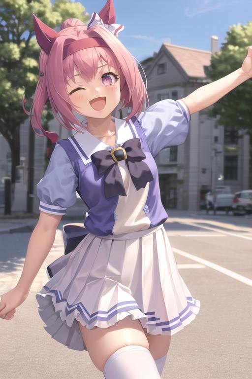 haru urara,school uniform,tracen school uniform,summer uniform,miniskirt,white thighhighs,bowtie,