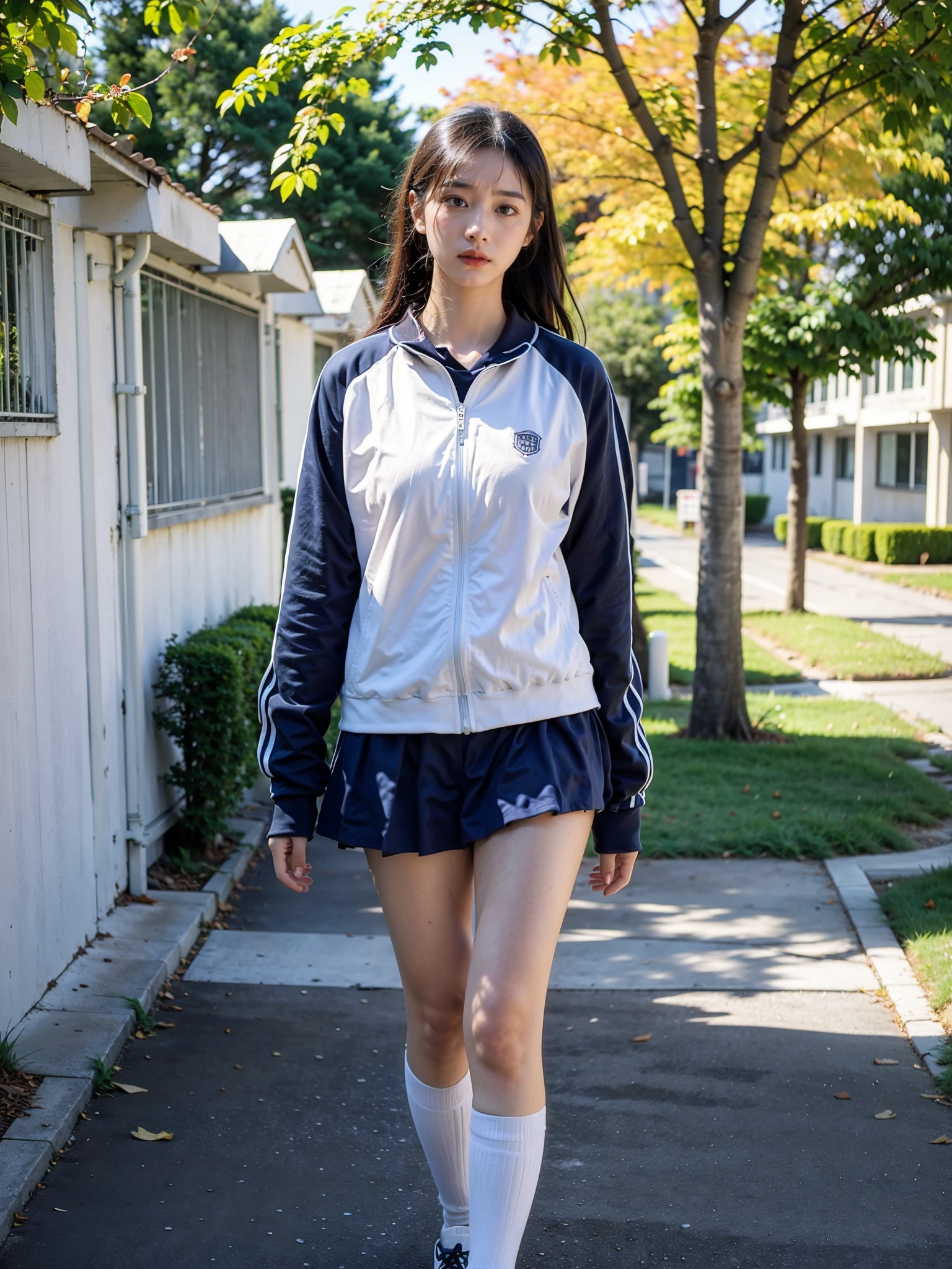 Trigger words: (sportswear),long sleeves,jacket,white and blue,