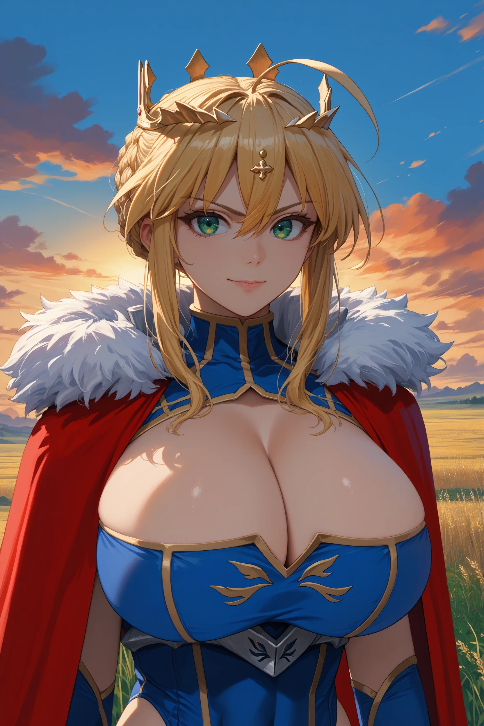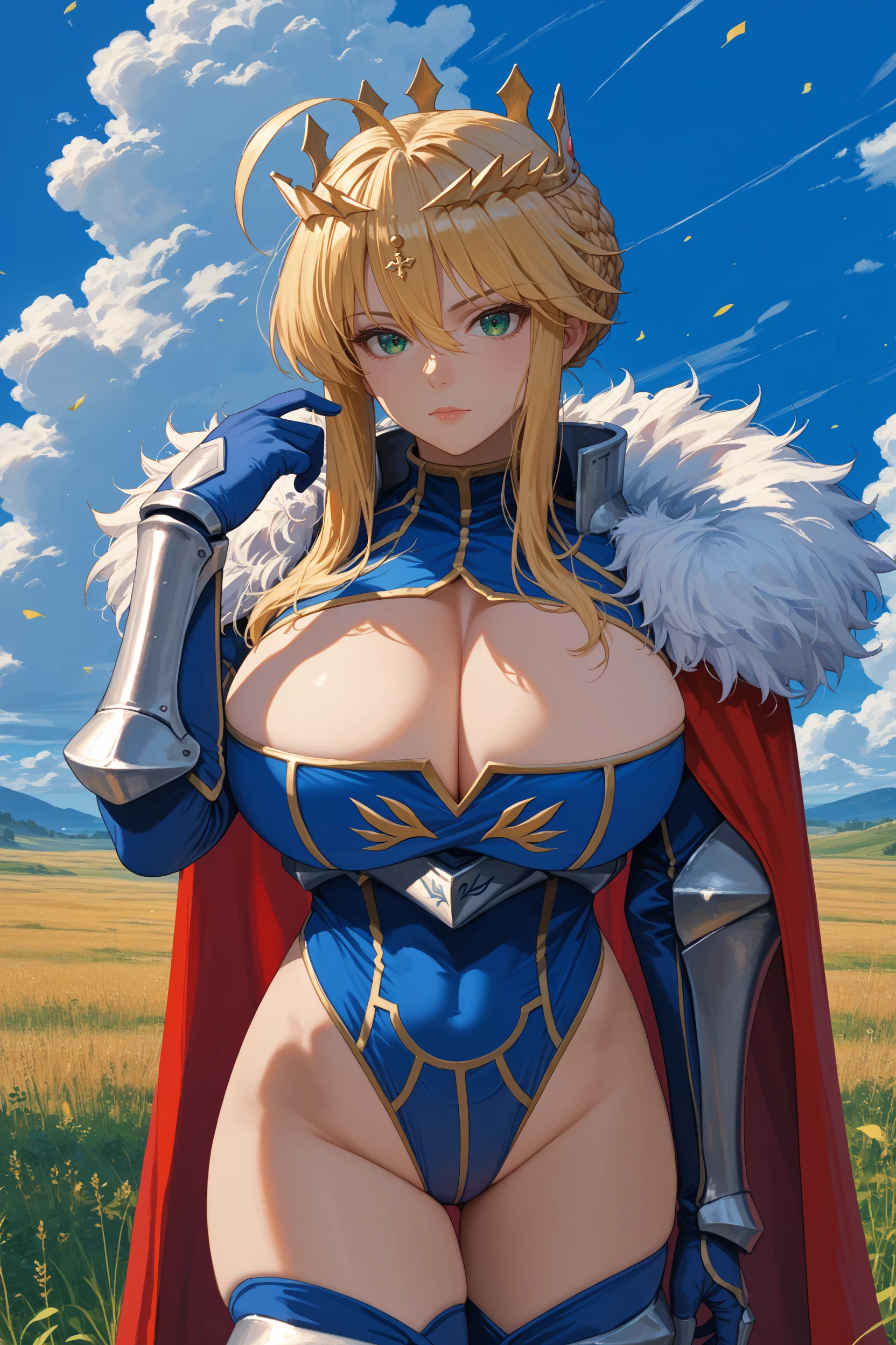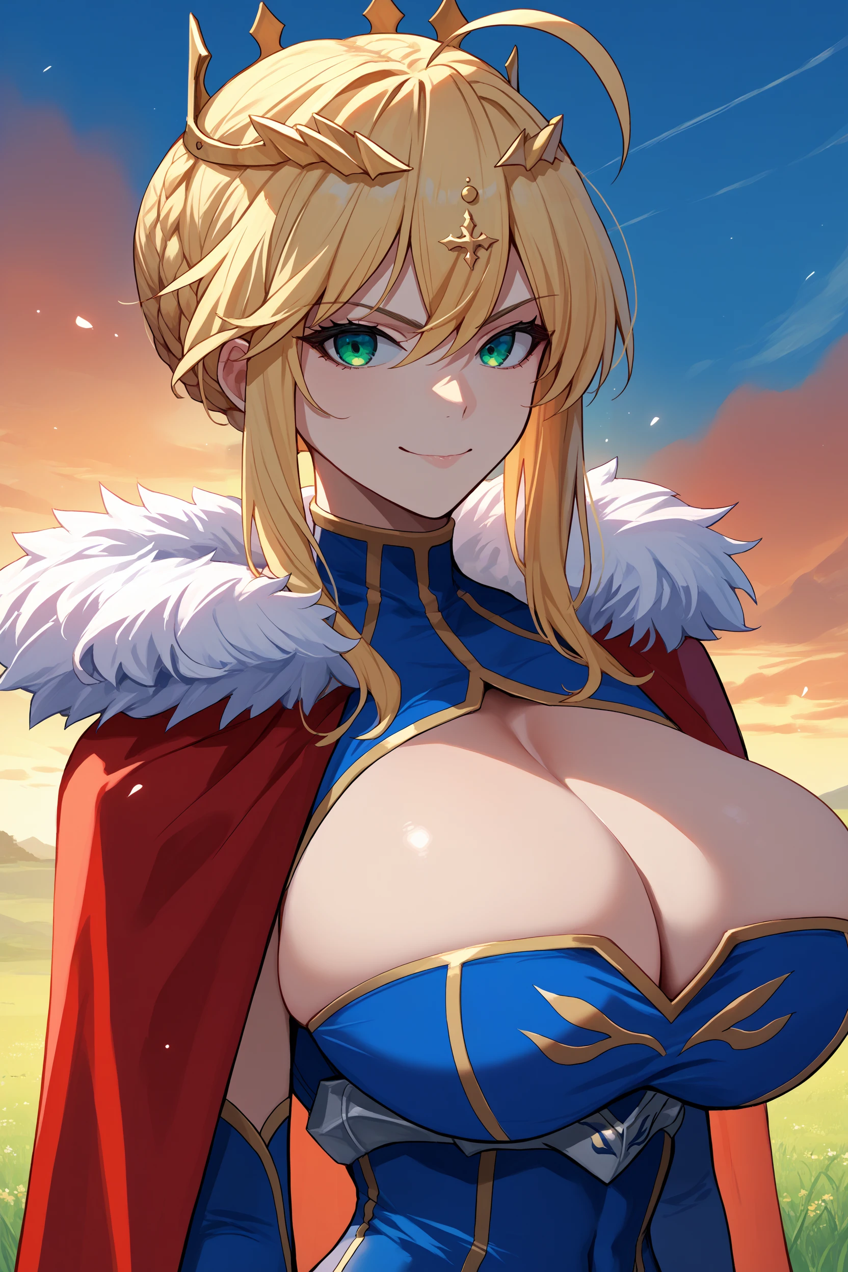 Trigger word is "artoLance" and "swept bangs, ahoge, blonde hair, green eyes, french braid, short hair" is mandatory.