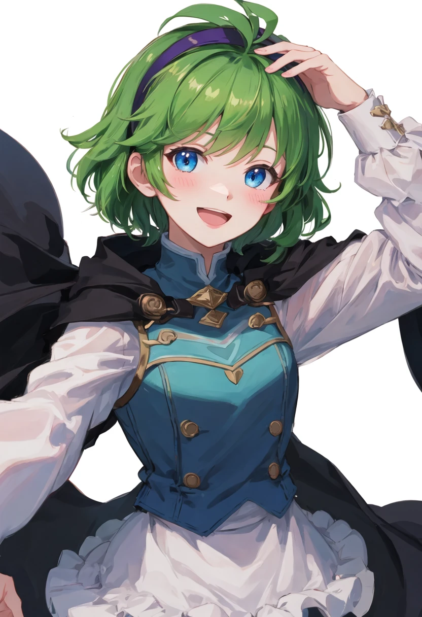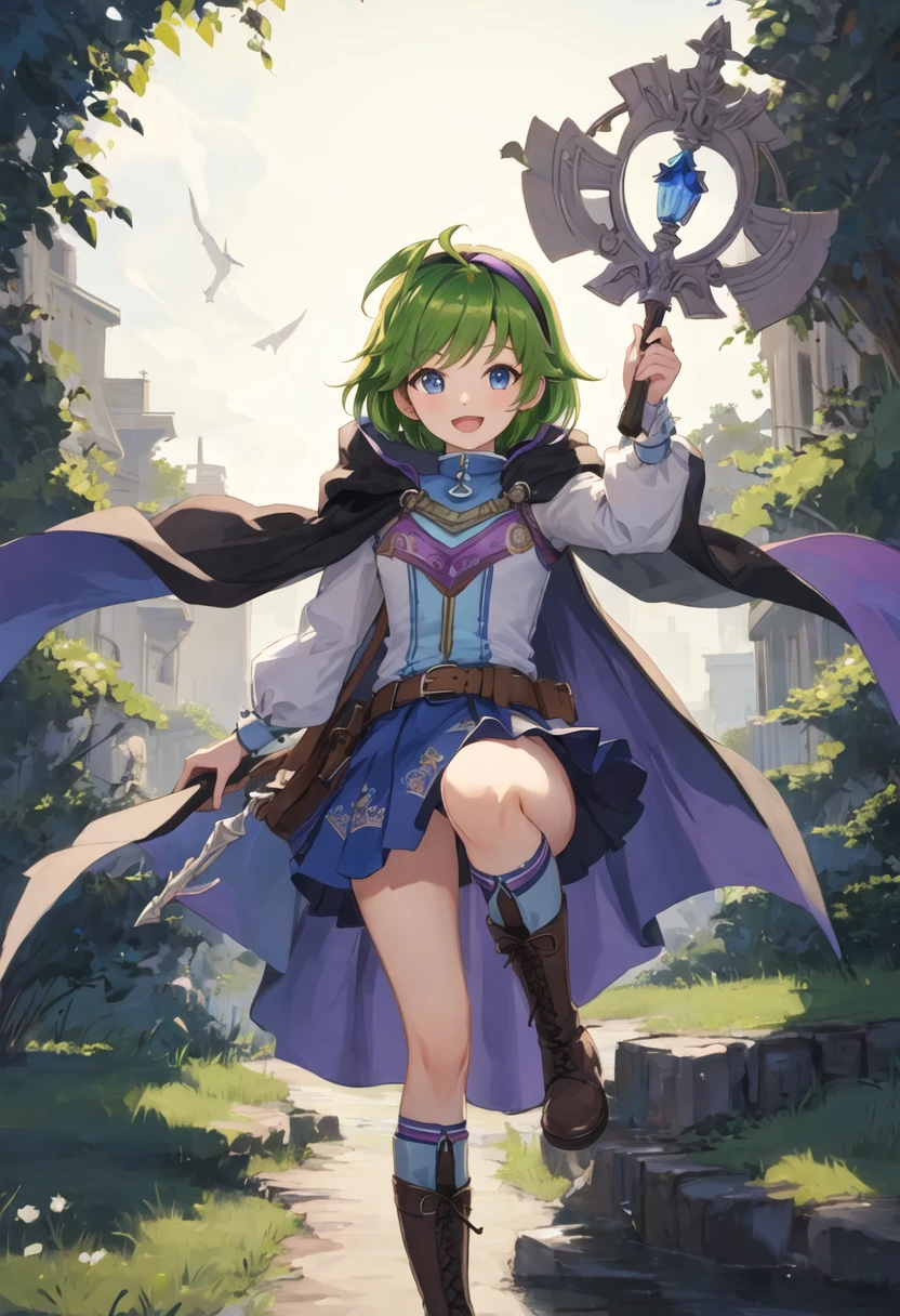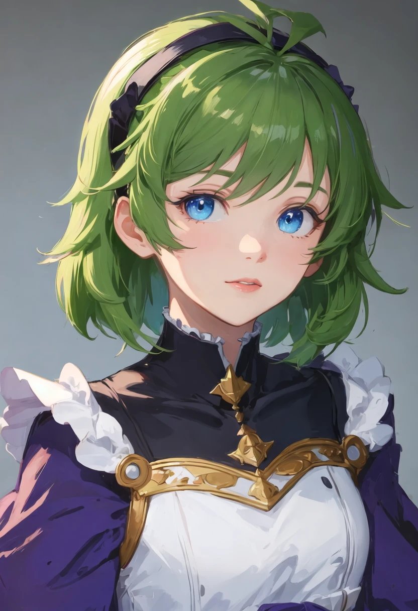 - The pruned character tags are green_hair, short_hair, hairband, blue_eyes, purple_hairband. You can add them into prompts when core features (e.g. hair color) of character is not so stable.