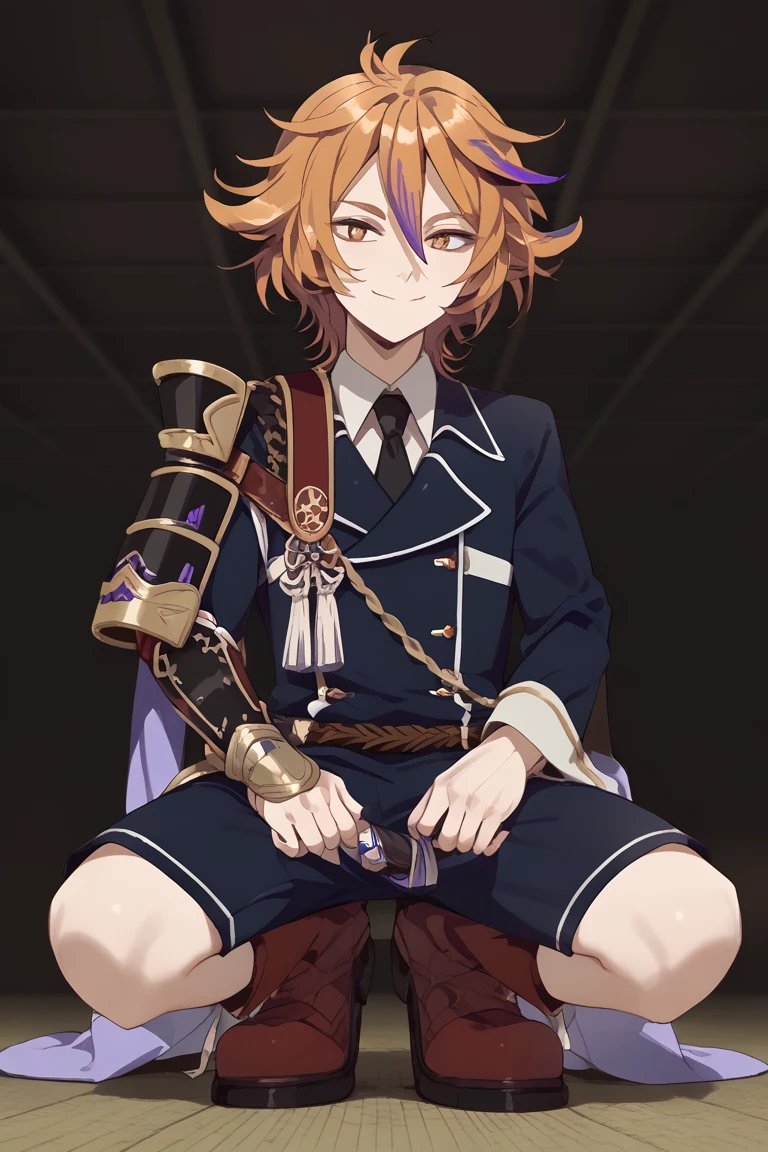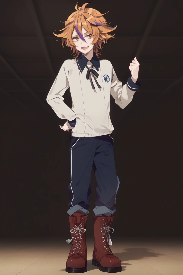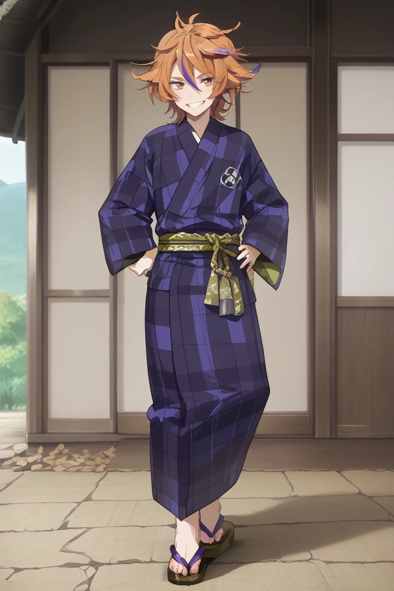 gotou toushirou, orange hair, orange eyes, hanamaru style, streaked hair, purple hair,