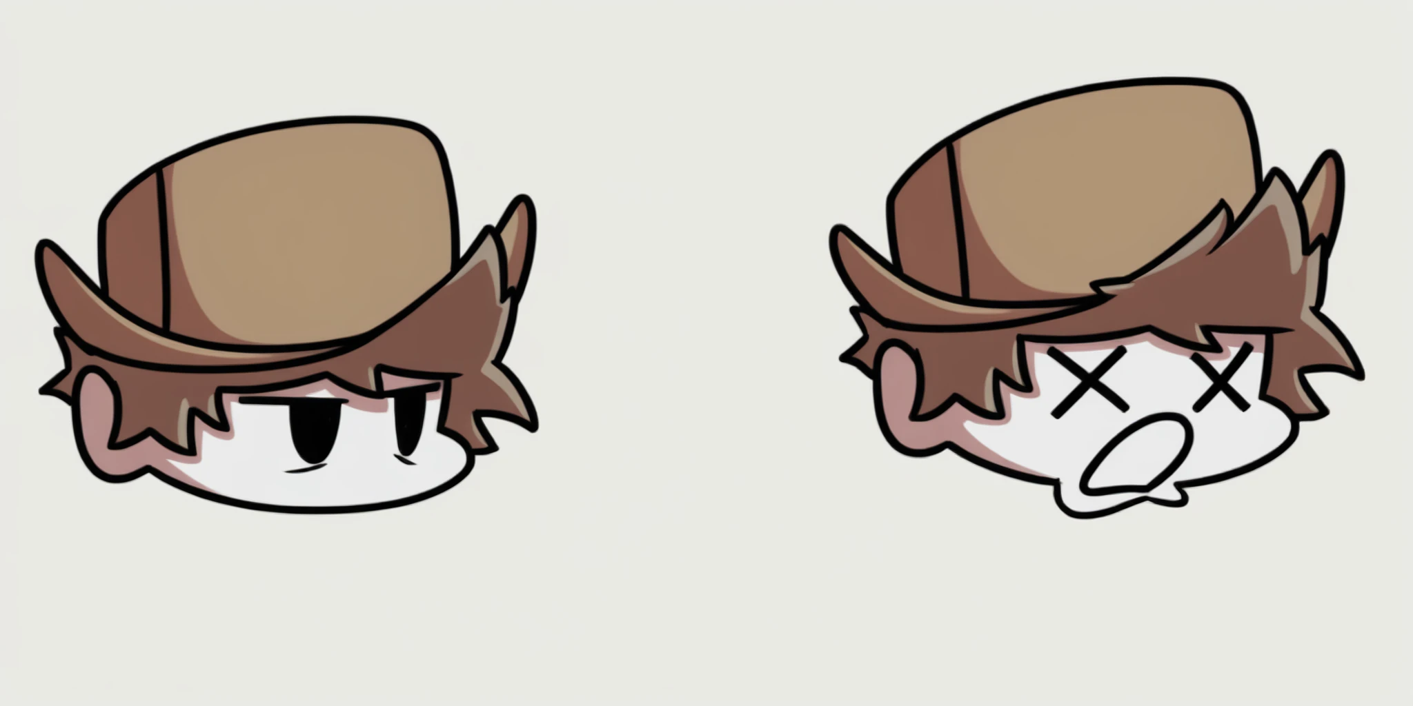 fnficons, flat color, 2 heads, icons, icon, before and after, ((head)), ((head only))