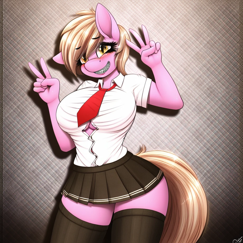 Oc:Reppy,Reppy,pink skin,blonde hair, brow eyes,flower cutie mark