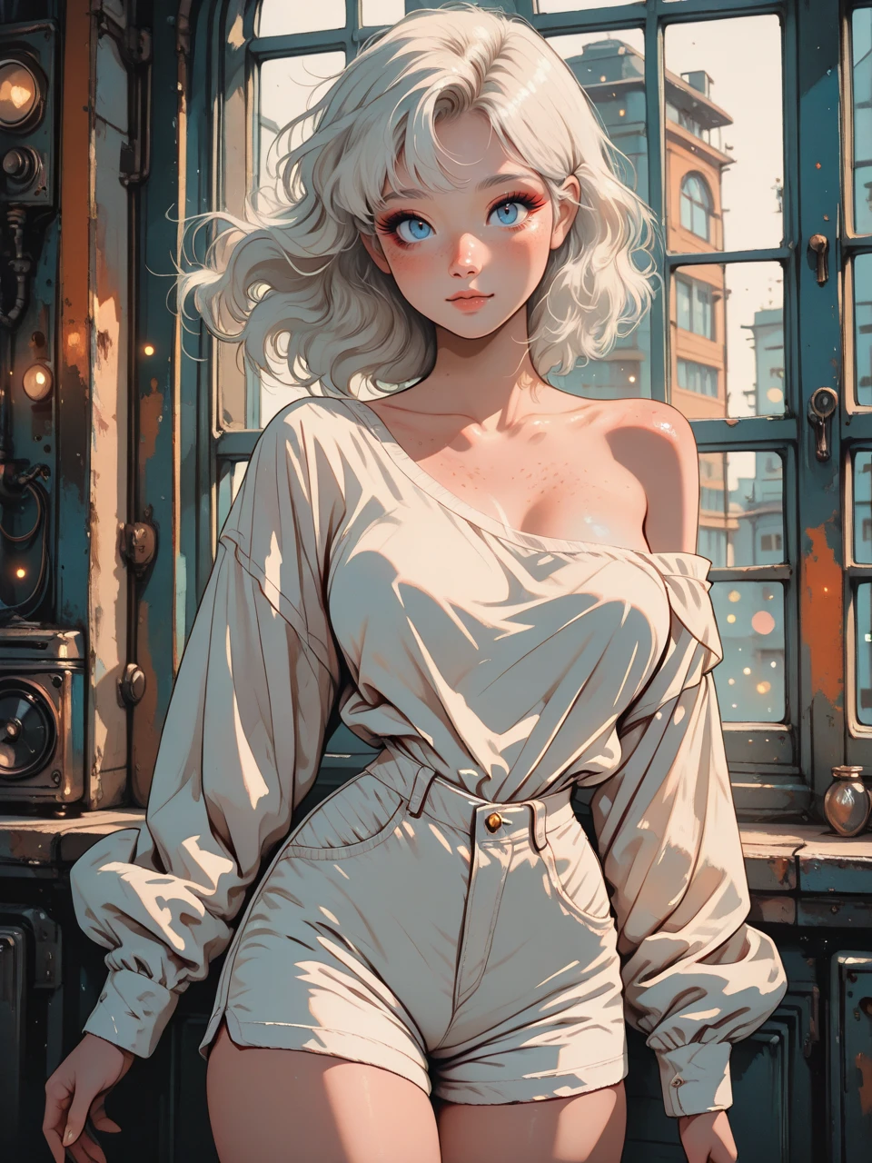 Moonmilk Retro is a model that blends soft contrasts with a retro aesthetic from the '80s and '90s. It combines pastel and rich tones, with muted blues, milky whites, and deep blacks creating a balanced and striking palette. Light skin is depicted with a soft glow and natural hues, while highlights on hair and fabric appear smooth and glossy without overwhelming the image. Perfect for creating adorable retro-style characters with expressive eyes, stylish clothing, and vibrant details. This model excels at evoking both nostalgia and futuristic vibes, ideal for scenes with a cute yet edgy atmosphere and distinct personalities.