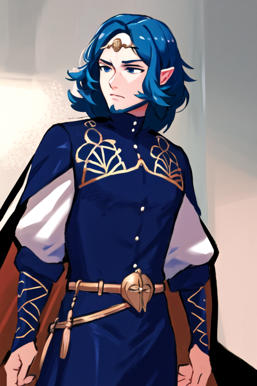 adding circlet, belt, cape, navy blue robes to the prompt can help with his outfit but it's not entirely necessary