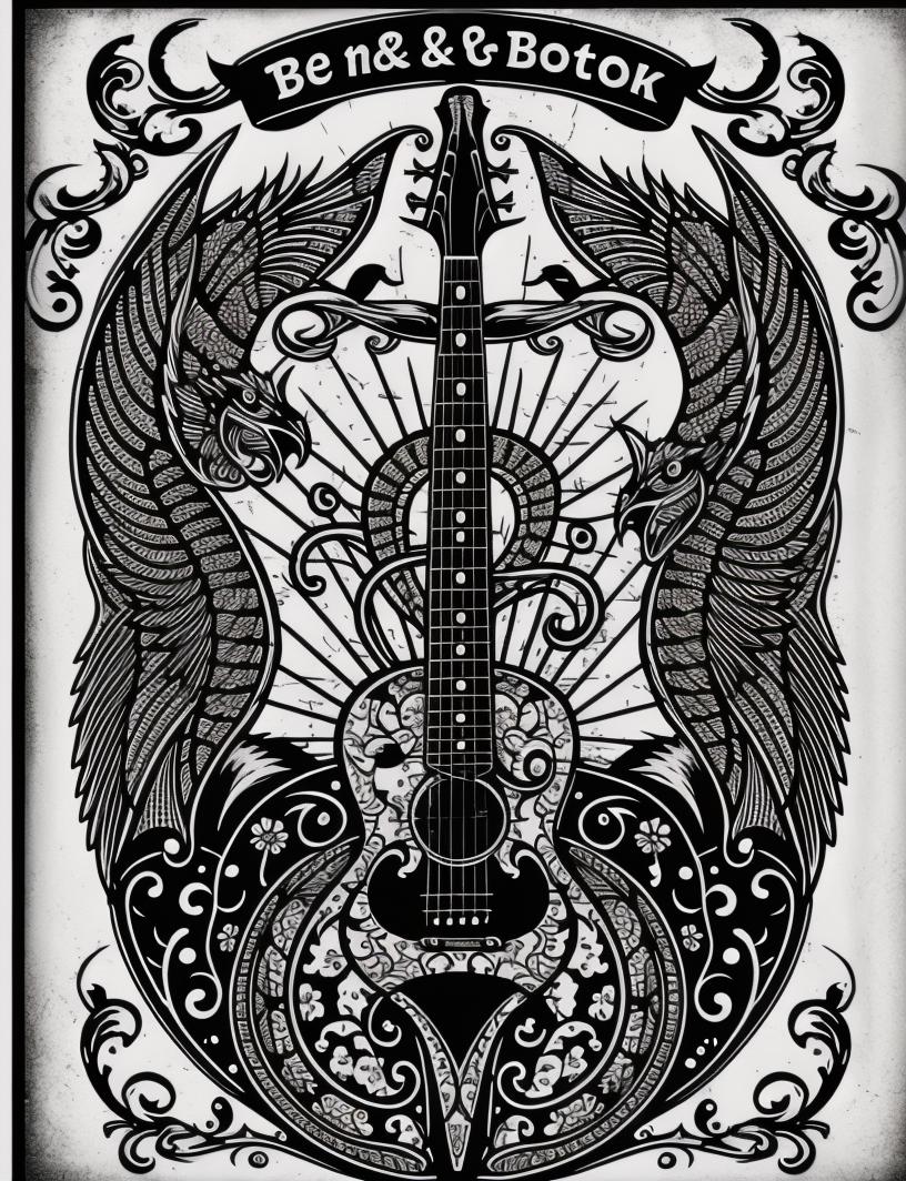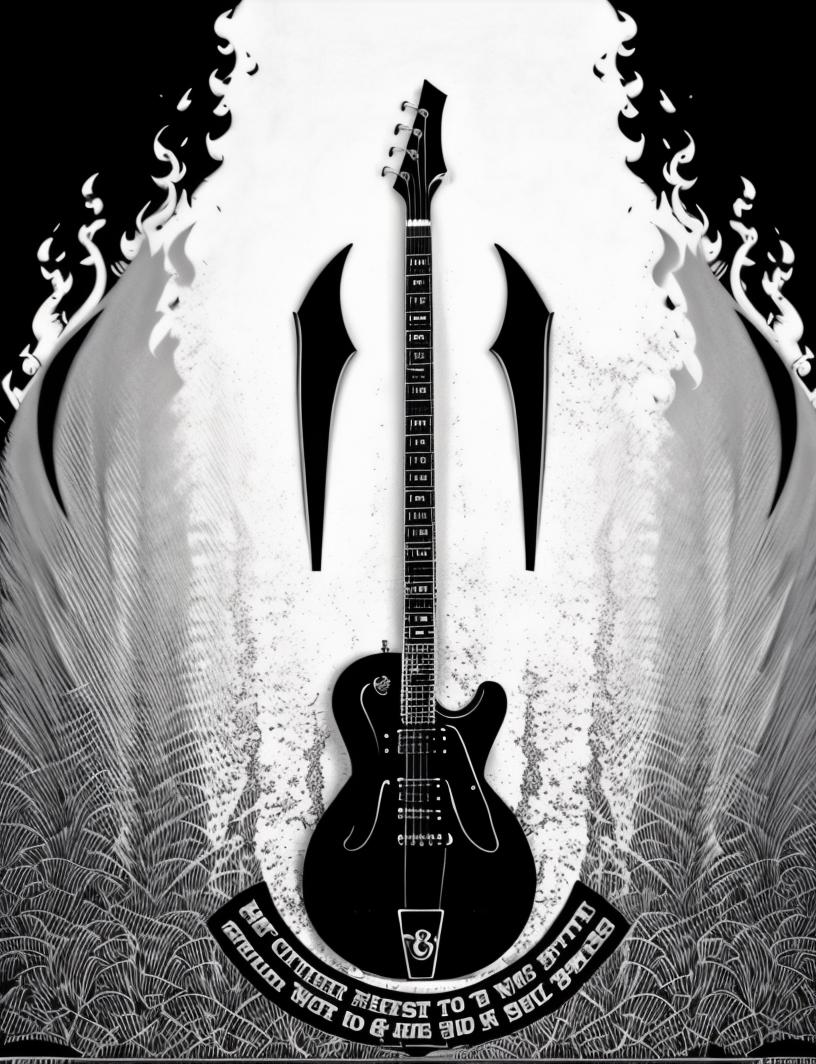vintage, bird, skull (((poster))), backround guitar, <lora:VintageRock:1>, big wings
